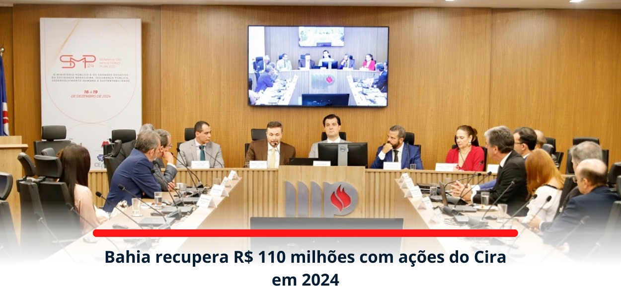 As ações da Força-Tarefa do Comitê Interinstitucional de Recuperação de Ativos (Cira) da Bahia resultaram, em 2024, na recuperação direta de R$ 110 milhões para os cofres estaduais. Os números foram apresentados durante a última reunião do ano, realizada na sede do Ministério Público da Bahia (MPBA), no Centro Administrativo da Bahia (CAB).