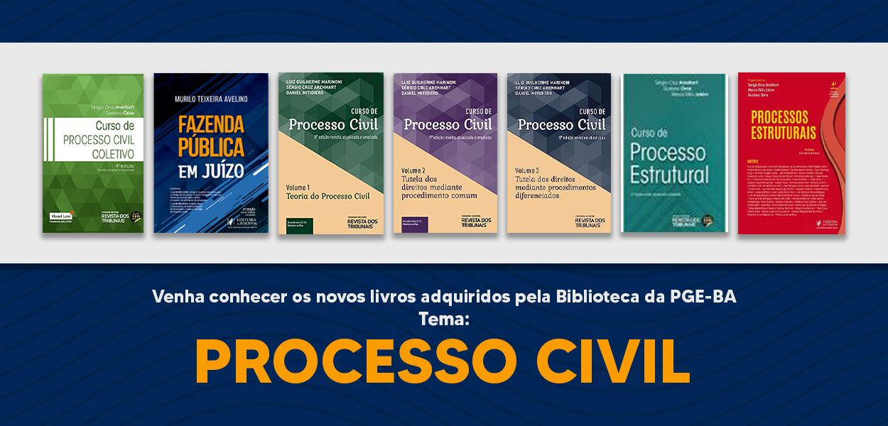 A Biblioteca Dinorá Quaresma, da Procuradoria Geral do Estado da Bahia, está disponibilizando novos livros com a temática voltada para o Processo Civil. Confira os títulos e autores que compõem o novo acervo.