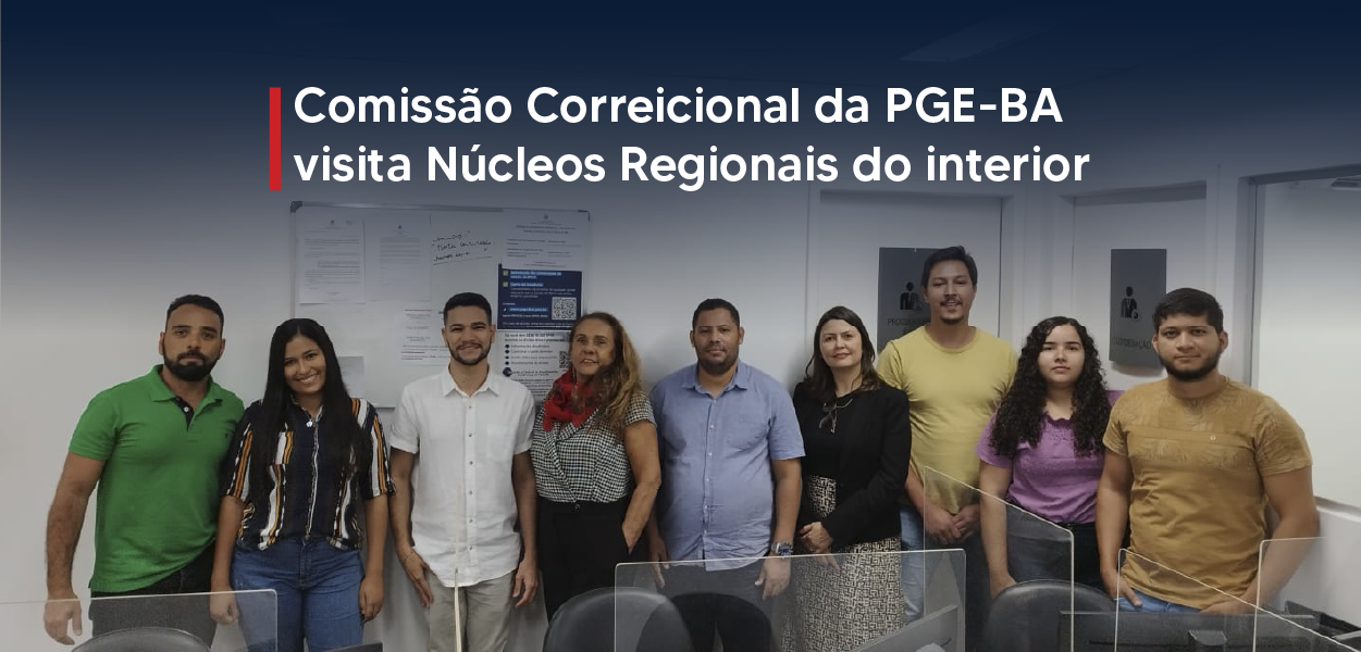 Cumprindo o calendário Correicional de 2022/2023, a Comissão de Correição da PGE-BA está em visita à sede do Núcleo Regional de Barreiras. O grupo de trabalho se reuniu com o Procurador do Estado José Paulo Sisterolli, responsável pela Regional e com o Coordenador Felipe Dias Bispo, tendo trocado impressões com os estagiários de graduação e colaboradores do Programa Primeiro Emprego.