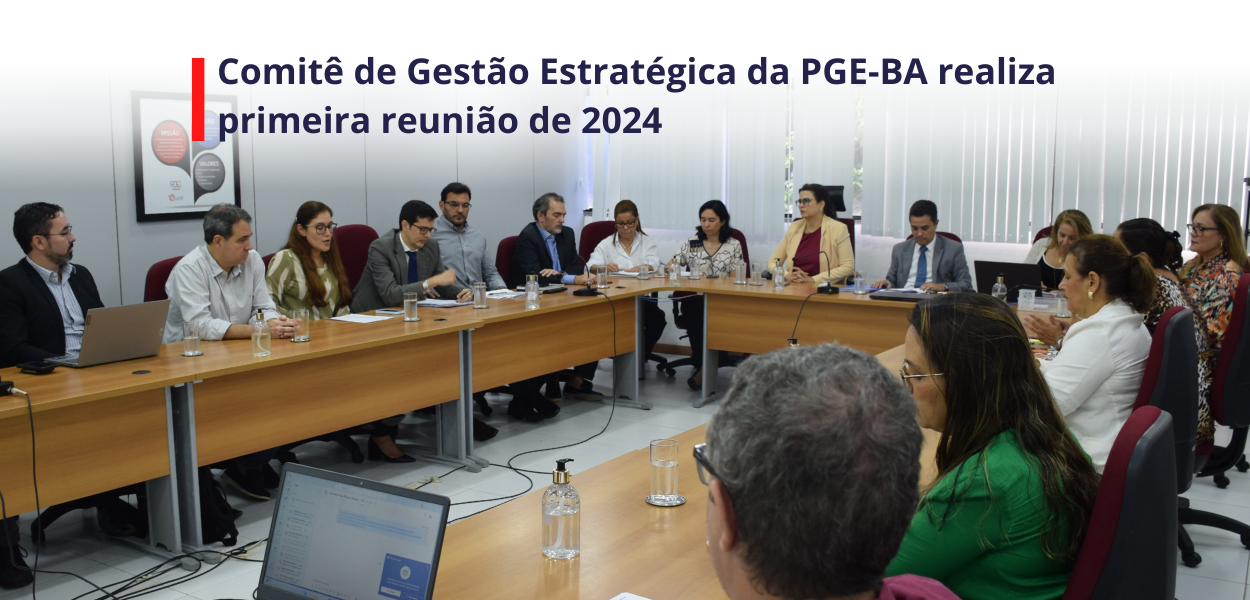 A Procuradoria Geral do Estado da Bahia (PGE-BA) realizou, na última quarta-feira (22), a primeira reunião do Comitê de Gestão Estratégica do ano. O encontro, que ocorreu na sala de reunião do Conselho Superior, destacou o desempenho positivo do portfólio de projetos da instituição.