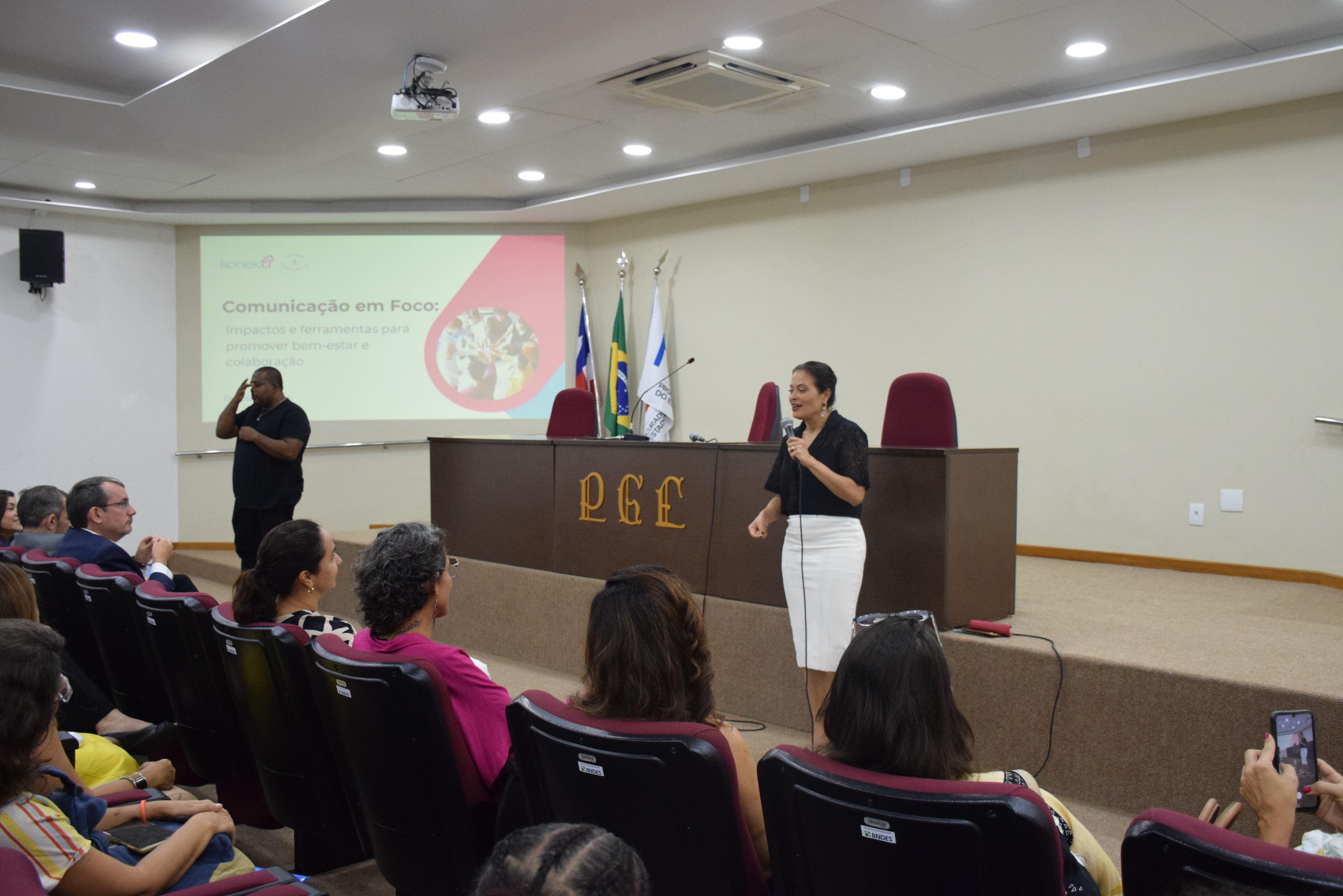 Com o objetivo de estimular relações saudáveis e produtivas no ambiente de trabalho, a Procuradoria Geral do Estado da Bahia (PGE-BA) promoveu, na tarde de ontem, (27), no auditório Paulo Spínola, a palestra "Comunicação em Foco: Como promover bem-estar e colaboração".