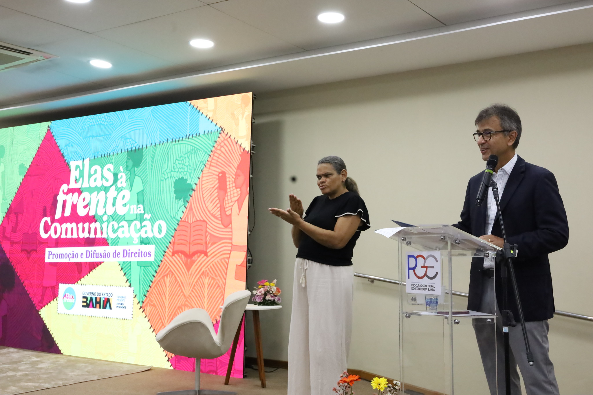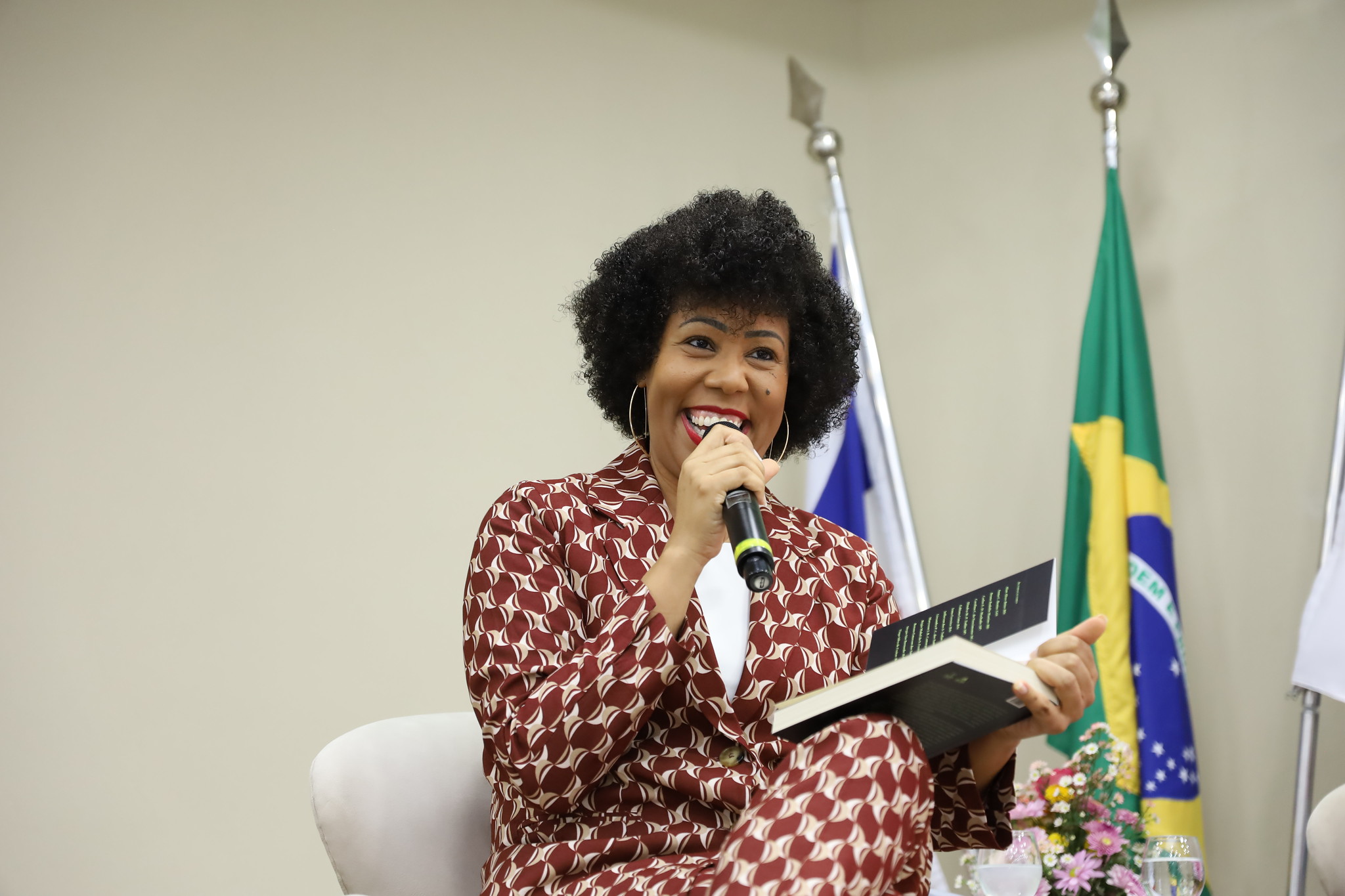 A procuradora Geral do Estado da Bahia, Bárbara Camardelli, expressou seu entusiasmo em receber a professora Conceição Evaristo no evento que discutiu o importante papel das mulheres comunicadoras. "A presença da professora Evaristo é uma honra e uma inspiração para todos nós. Sua trajetória e suas contribuições para a literatura e para a luta pelos direitos das mulheres são inestimáveis. Este evento é uma oportunidade valiosa para refletirmos sobre o impacto das mulheres na comunicação e sobre como podemos avançar em direção a uma sociedade mais inclusiva e justa," afirmou a Procuradora Geral.