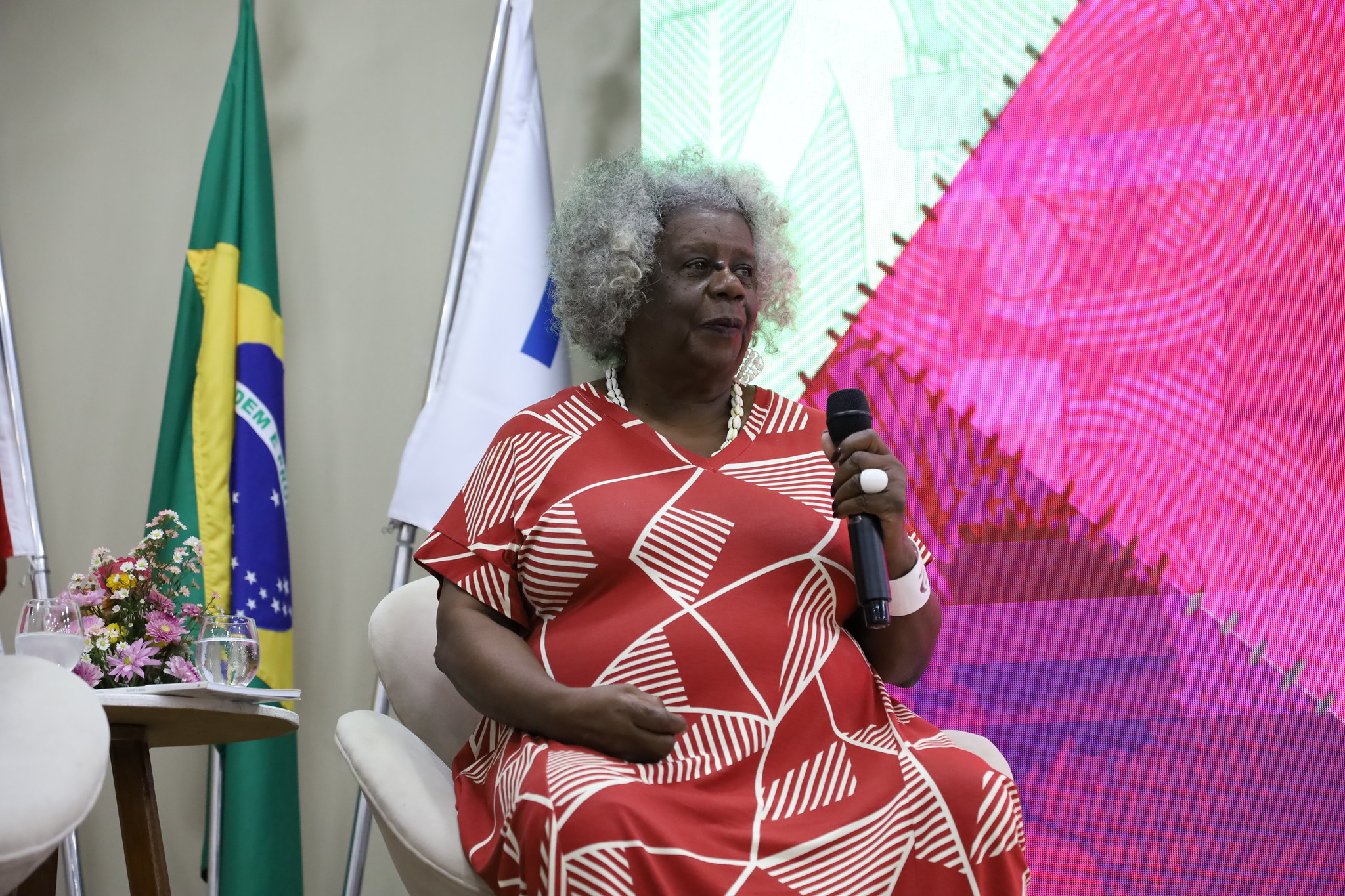 As escrevivências de Conceição Evaristo foram saberes para a construção de diálogos sobre mulheres negras na comunicação, na manhã desta sexta-feira (12), no auditório da Procuradoria Geral do Estado (PGE), em Salvador. A escritora, imortal da Academia Mineira de Letras, expôs que a escrita da mulher negra comunicadora “perturba o sono da Casa-Grande” quando um novo estilo e estética para o setor são criados a partir de um olhar crítico de mulheres negras.