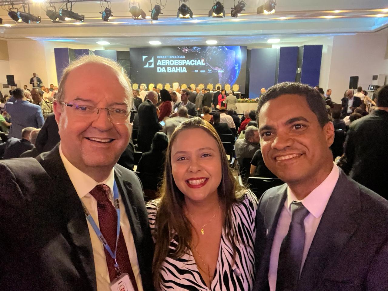 A Procuradora Geral do Estado da Bahia, Bárbara Camardelli, acompanhada do Procurador do Estado, Ubenilson Colombiano, participaram na manhã de hoje, (18), da solenidade de assinatura do acordo de parceria firmado pelo Governo Federal, por meio do Ministério da Defesa e do Comando da Aeronáutica, com o Estado da Bahia e o Senai Cimatec para a criação do Parque Aeroespacial do Estado da Bahia. O evento contou com a presença do presidente Luís Inácio Lula da Silva e a expectativa é que sejam investidos R$ 650 milhões na construção do parque e um valor equivalente em equipamentos e laboratórios.
