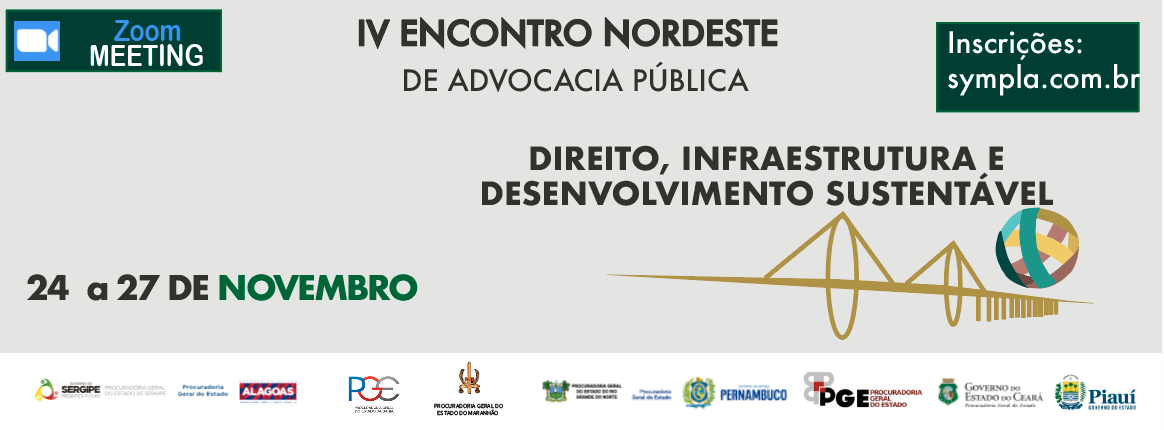 De 24 a 27 deste mês, mais de 20 conferencistas da área jurídica discutirão a região Nordeste sob o tema Direito, Infraestrutura e Desenvolvimento Sustentável, no IV Encontro Nordeste da Advocacia Pública (ENAP). Organizado pelos Centros de Estudos das Procuradorias Gerais do Maranhão (PGE/MA) e da Bahia (PGE/BA), o evento será online, com inscrições gratuitaspelo endereço www.sympla.com.br.