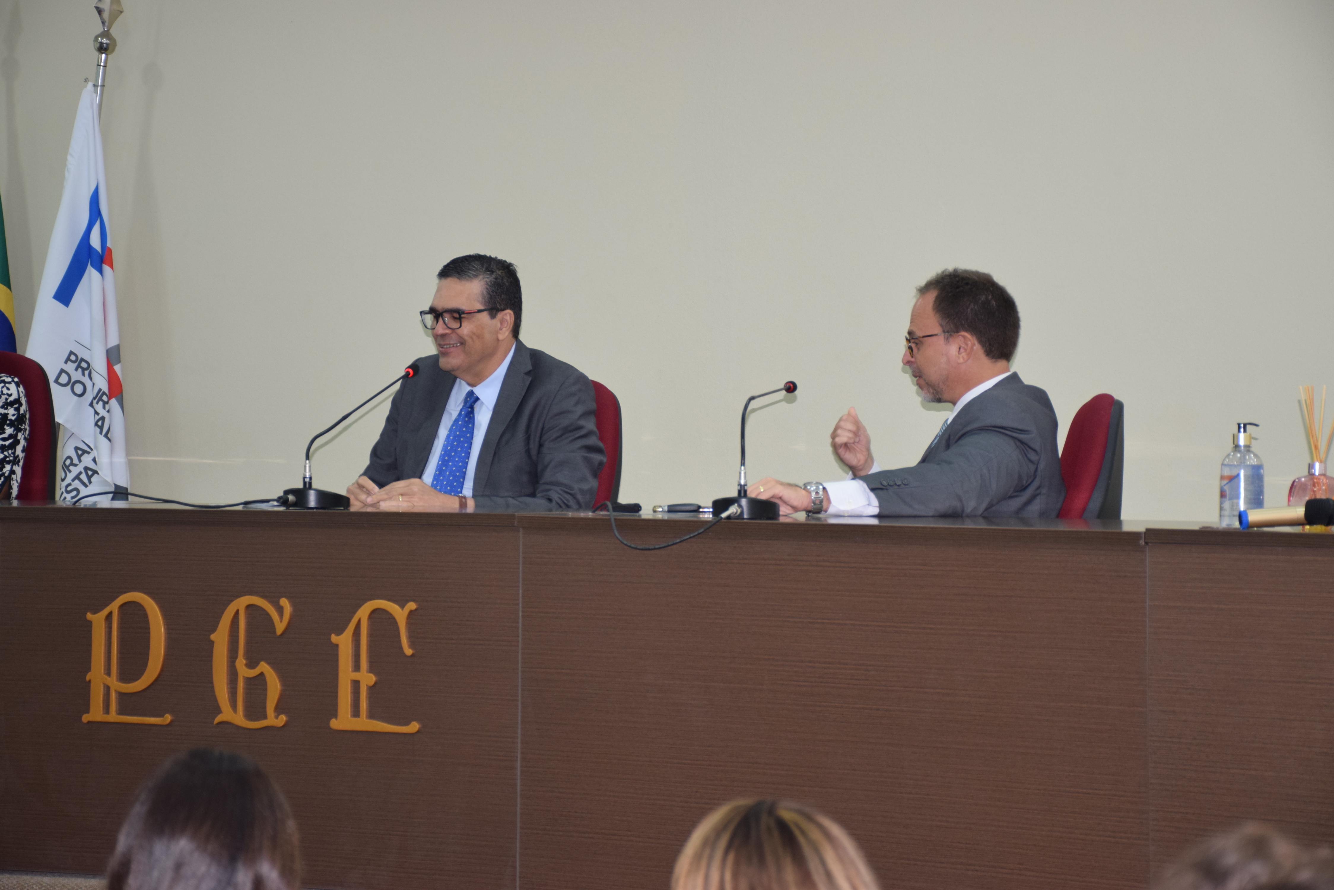 O procurador geral apresentou o papel social da PGE, os seus campos de atuação, seja na prestação de consultoria aos diversos instâncias da administração pública, seja na defesa dos interesses do Estado, e a sua transversalidade na relação com os diversos órgãos públicos. Apresentou ainda a estrutura da instituição, com seus principais departamentos.