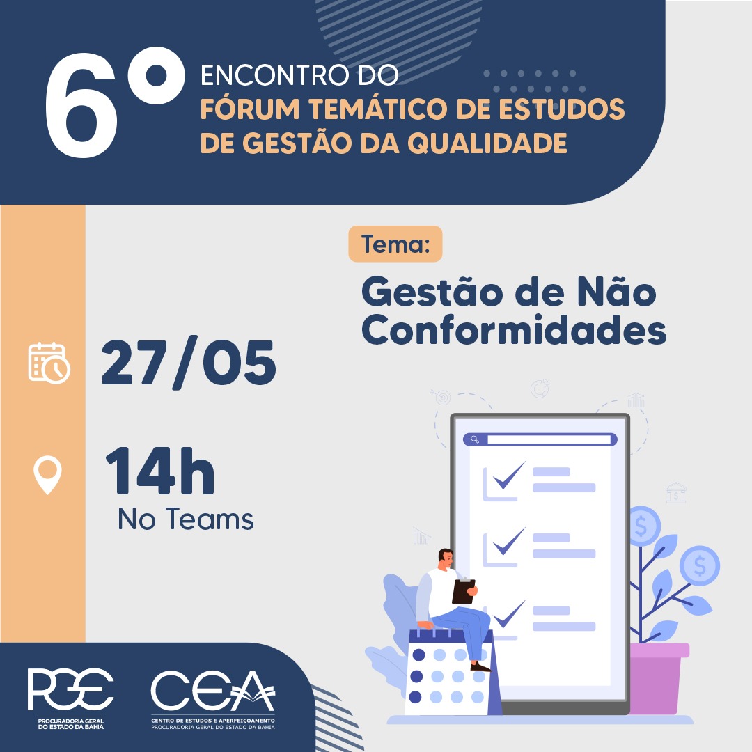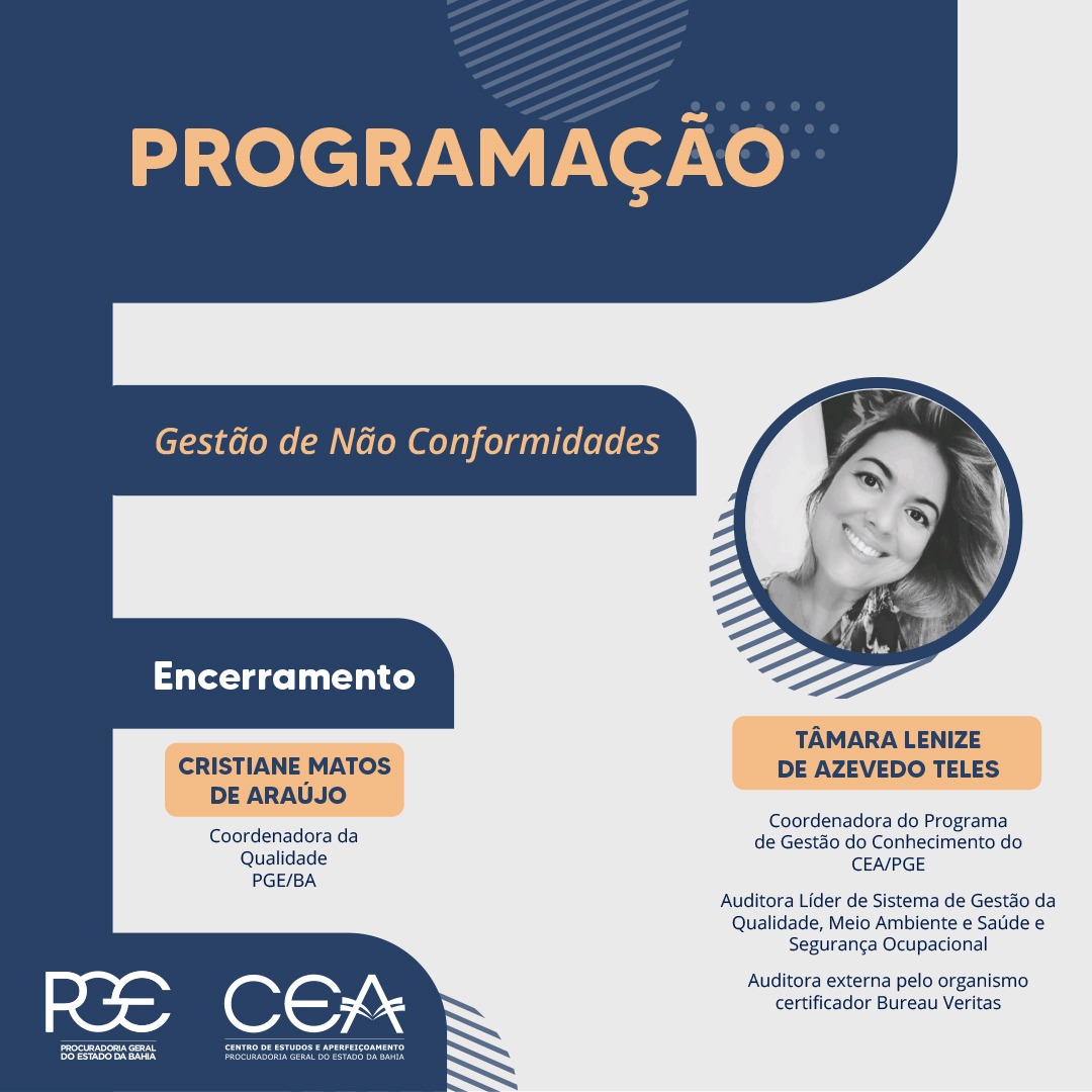 O encontro será realizado pela plataforma Teams e contará com uma palestra da coordenadora do Programa de Gestão do Conhecimento do CEA/PGE, Tâmara Lenize de Azevedo Teles, que falará sobre o referido tema destacando sua importância na melhoria dos processos.
