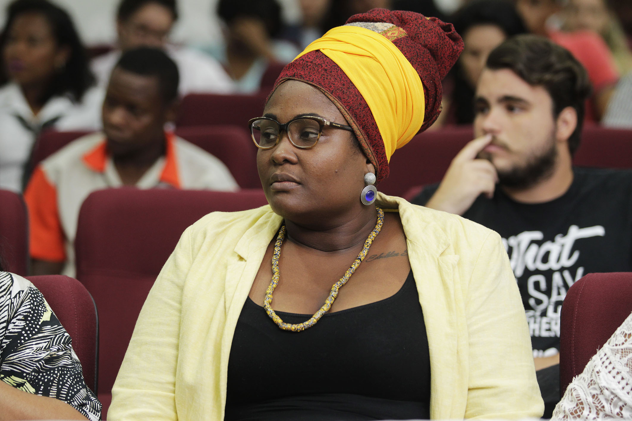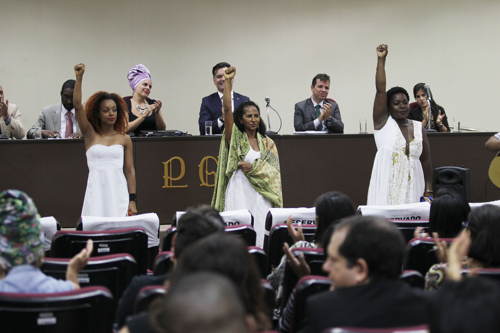 Os trabalhos da tarde foram abertos com uma manifestação do procurador do Estado Adriano Ferreira da Silva, que falou sobre o projeto Gameleira, elaborado coletivamente dentro da PGE com o intuito de inserir o órgão na agenda do Novembro Negro do Estado da Bahia promovendo ações voltadas para a discussão de questões raciais e valorização da cultura negra.