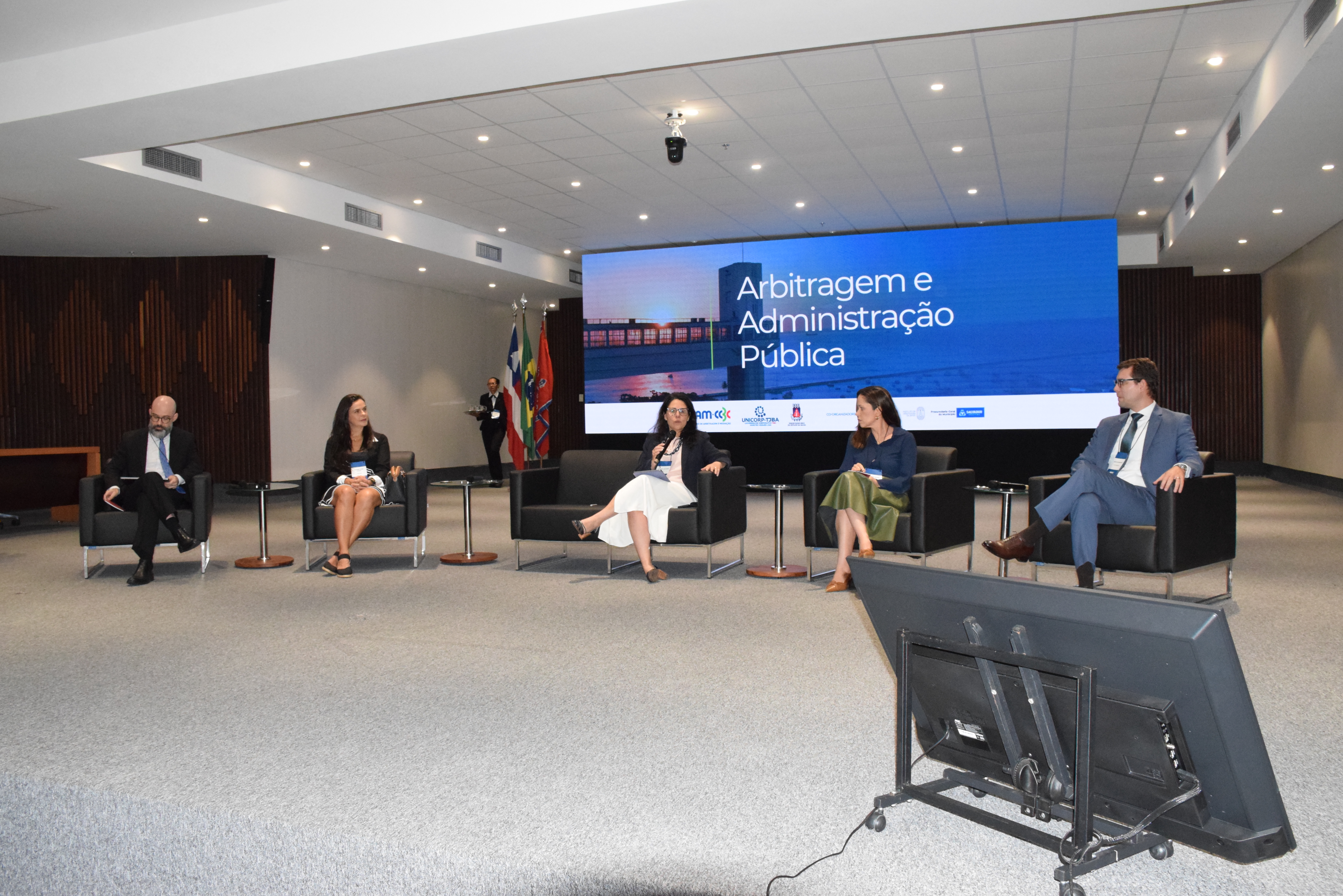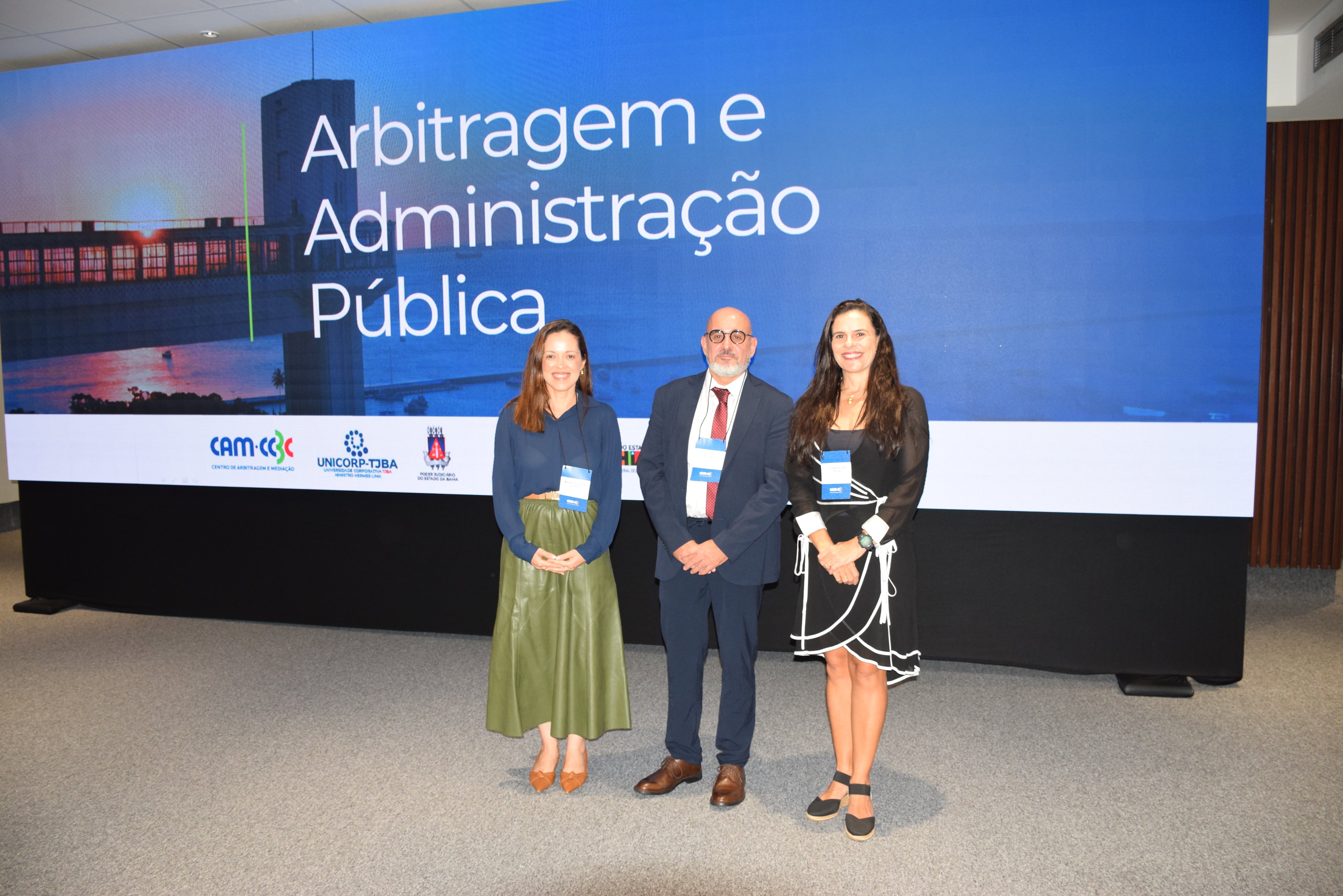 A mesa de abertura contou com a participação de autoridades e especialistas. Estiveram presentes o Desembargador, vice-presidente do TJBA, João Bôsco de Oliveira Seixas, representando a Presidente do TJBA, Desembargadora Cynthia Maria Pina Resende; a Juíza de Direito Isabella Santos Lago, Coordenadora da UNICORP, representando o Diretor Geral da UNICORP, o Desembargador Edmilson Jatahy Fonseca Júnior (TJBA); Rodrigo Garcia da Fonseca, presidente do Centro de Arbitragem e Mediação Brasil-Canadá (CAM-CCBC); Gabriel Seijo, Presidente do IArB; a Procuradora Geral do Estado da Bahia, Bárbara Camardelli; o Procurador Geral do Município de Salvador, Eduardo Vaz Porto; e a Procuradora Federal Adriana Maia Venturini.