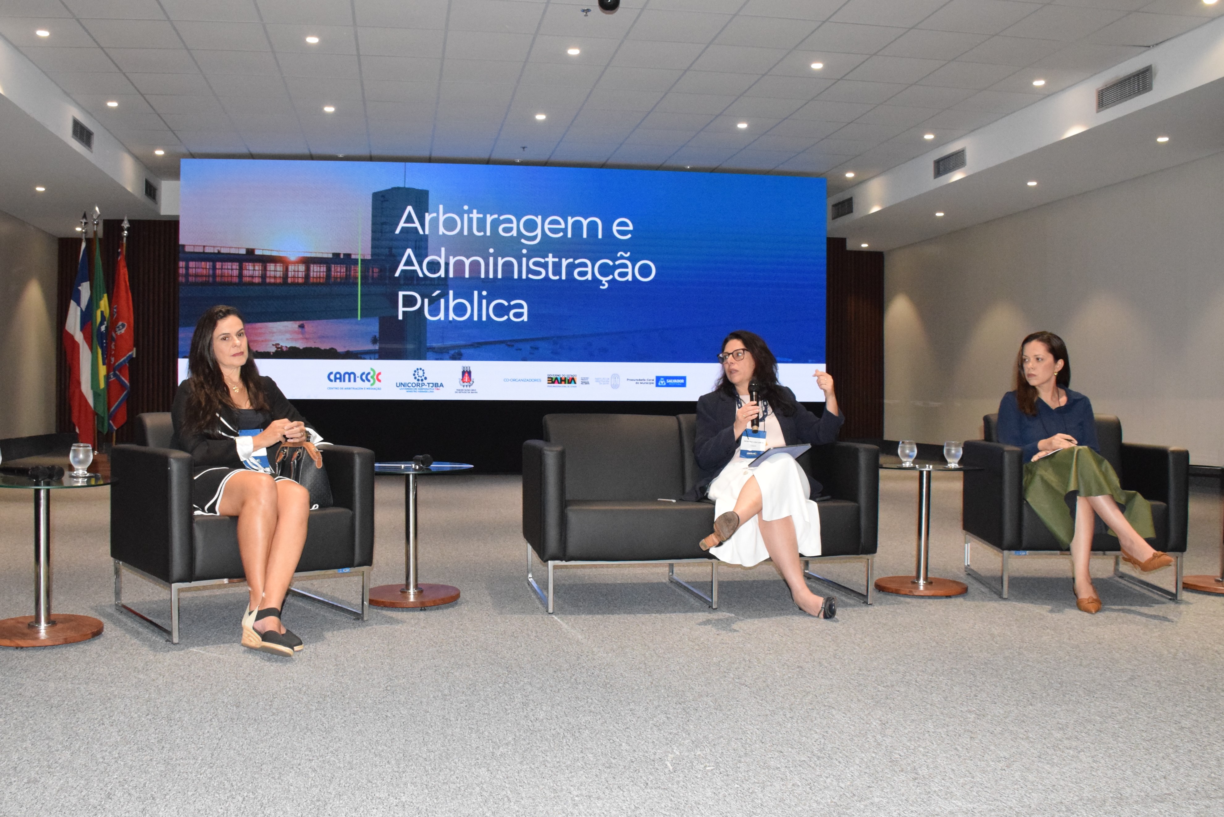 As representantes da PGE-BA enfatizaram os avanços e desafios da utilização da cláusula compromissória em contratos administrativos, ressaltando sua relevância para a segurança jurídica e a solução célere de conflitos.