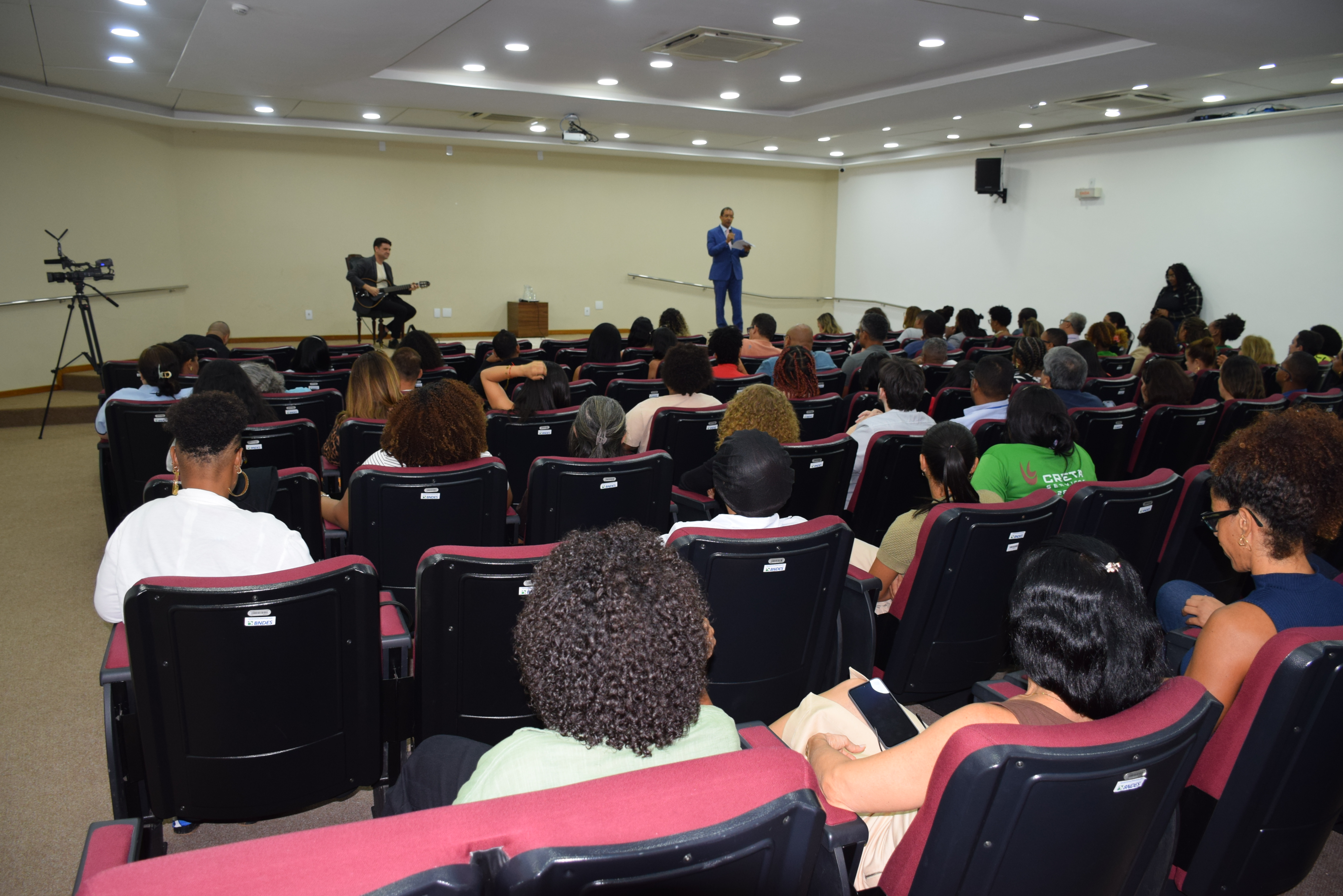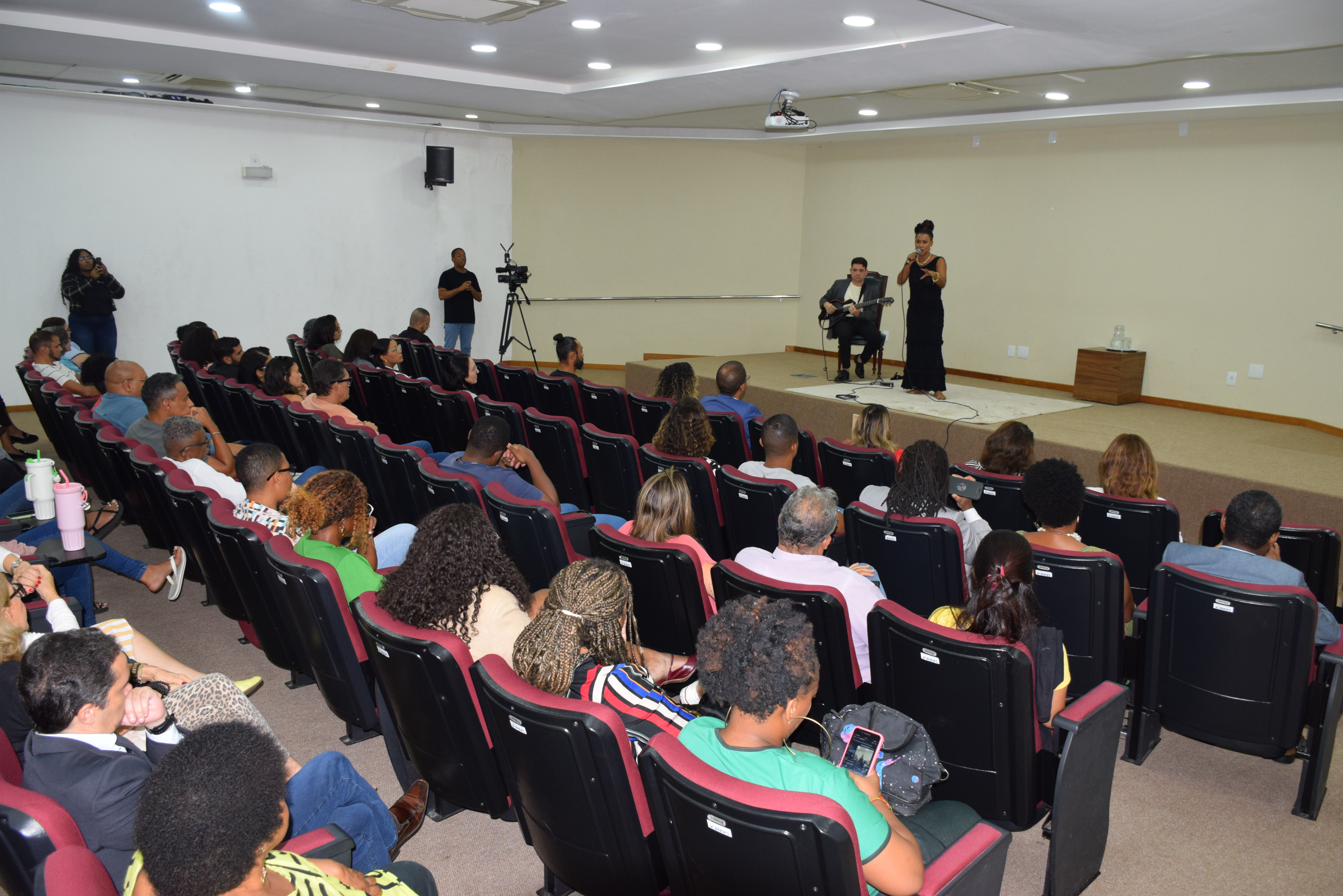 A programação do Novembro Negro da Procuradoria Geral do Estado da Bahia (PGE-BA) teve seu encerramento marcado por uma tarde de arte, reflexão e resistência. Nesta quinta-feira (27), o Auditório Paulo Spínola recebeu a artista, cantora e pesquisadora Ana Mametto para a palestra musicada “Pombagira – Entidade Silenciada”, promovida pelo Centro de Estudos e Aperfeiçoamento (CEA), alinhada à Política de Equidade de Gênero, Raça e Diversidade da instituição.