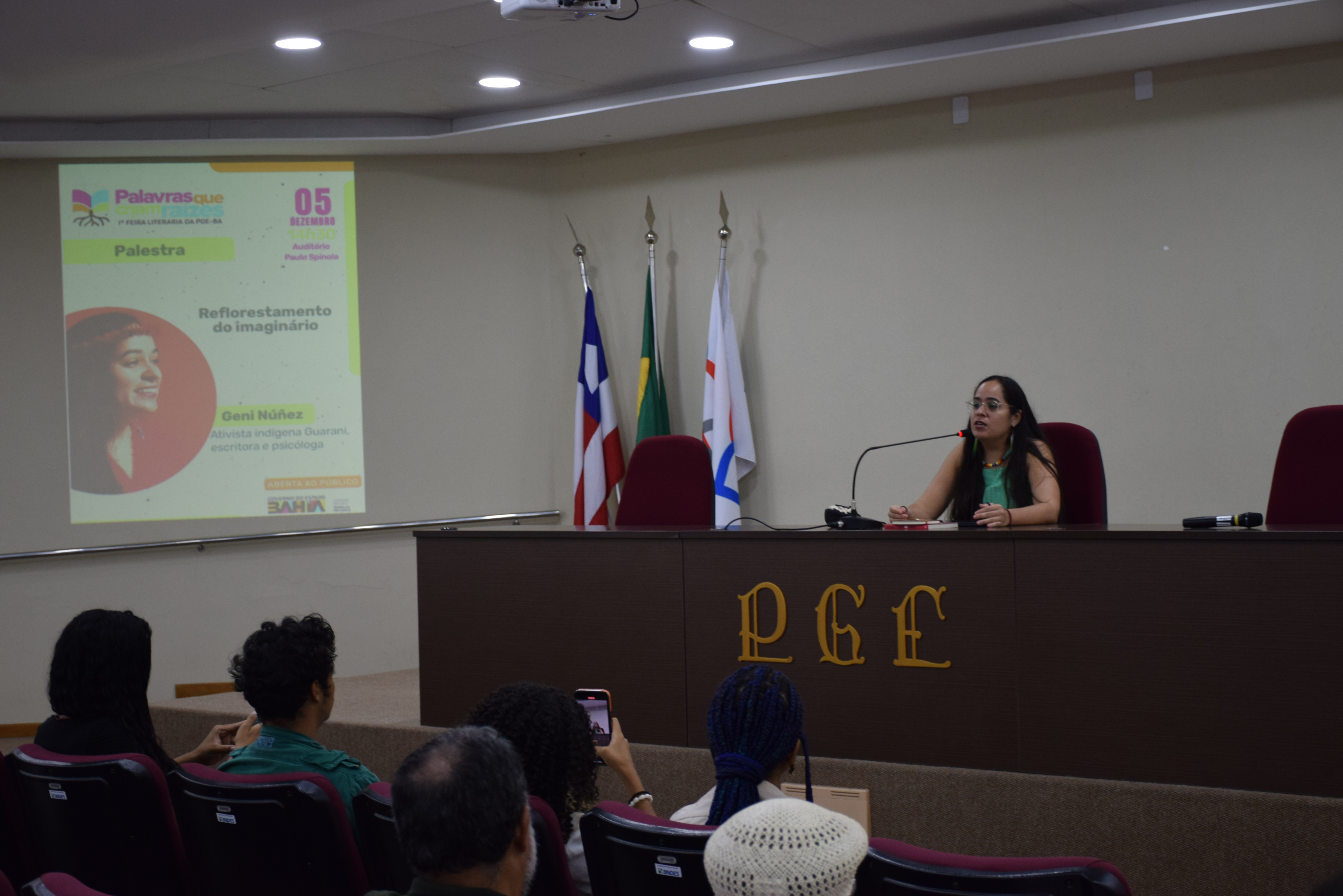 “Fui muito atraída pela proposta da Feira Literária da PGE, por oferecer um programa qualificado e sensível. A mesa de escritores pela manhã, nos trouxe oportunidade única de ouvir a experiência de quem traduz mais que palavras, pois o texto nos traz sentimentos, visões de mundo repletas de acontecimentos e influências... de fato, como alguém destacou na audiência: pessoas são livros. O momento da árvore de livros, trocas e especialmente o Sarau foi único para mim, que por tanto tempo guardei as palavras no papel, hoje elas literalmente voaram. E se a emoção transbordou e molhou o rosto, foi porque as palavras libertam. E aqui foram acolhidas. Gratidão. Vim também para ouvir a ativista indígena Guarani Geni Núñez, escritora e psicóloga. Muito interesse em tudo que nos trouxe sobre ‘Reflorestamento do imaginário’.”