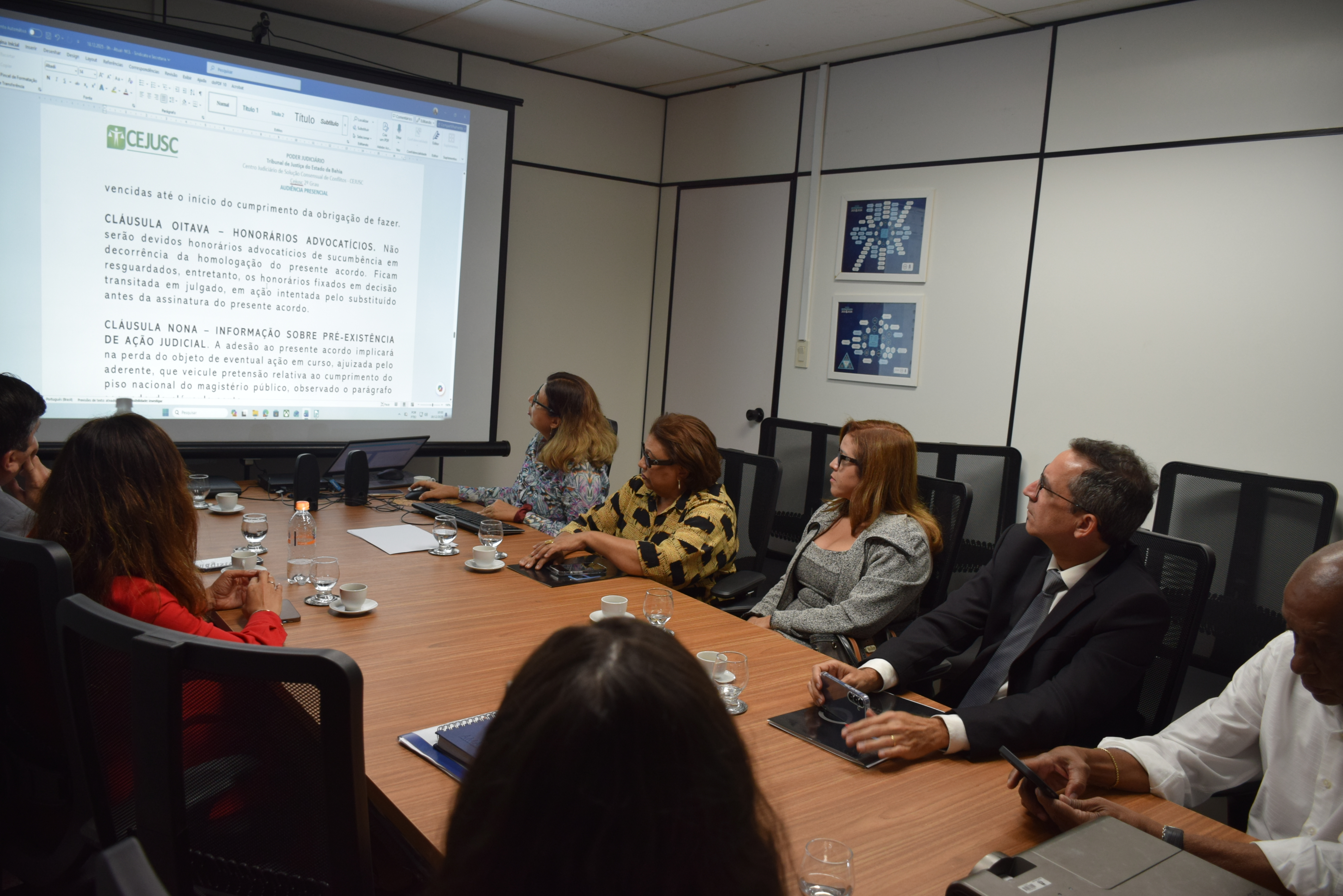 O ato  ocorreu na sala do Nupemec/TJBA, em reunião presidida pela Desembargadora Marielza Brandão, supervisora da unidade e contou com a presença da Procuradora Geral do Estado, Bárbara Camardelli, do procurador chefe da Procuradoria Judicial da PGE-BA, Ronaldo Nunes Ferreira, dos procuradores assistentes da Procuradoria Judicial, Frederico A. V. Oliveira e Tatiana Martins de Oliveira, bem como do Coordenador Geral da APLB - Sindicato dos Trabalhadores em Educação do Estado da Bahia, Rui Oliveira, e da equipe jurídica da entidade, representada pelos advogados Esmeralda Oliveira, Rita de Cássia de Oliveira Souza e Deraldo Brandão Filho.