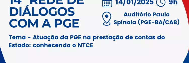 14º edição da Rede de Diálogos com a PGE abordará a atuação da Procuradoria na prestação de contas do Estado