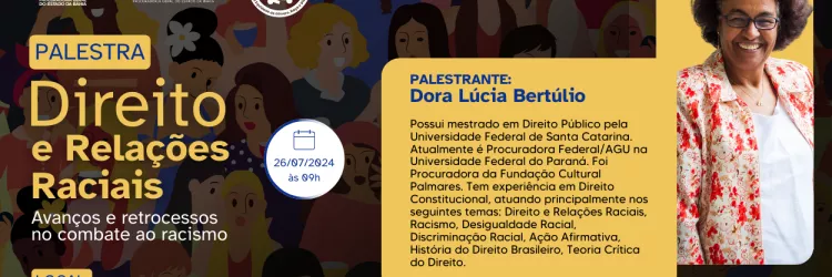 Palestra "Direito e Relações Raciais: avanços e retrocessos no combate ao racismo" será ministrada pela procuradora…