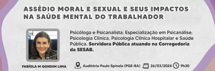 Palestra abordará Assédio Moral e Sexual e seus impactos na saúde mental dos trabalhadores