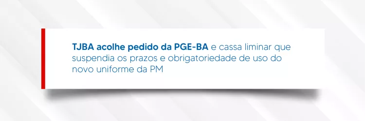 TJBA acolhe pedido da PGE-BA e cassa liminar que suspendia os prazos e obrigatoriedade de uso do novo uniforme da PM