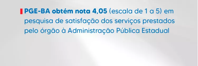 PGE-BA obtém nota 4,05 (escala de 1 a 5) em pesquisa de satisfação dos serviços prestados pelo órgão à Administração Pública…