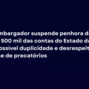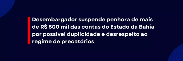Desembargador suspende penhora de mais de R$ 500 mil das contas do Estado da Bahia por possível duplicidade e desrespeito ao…