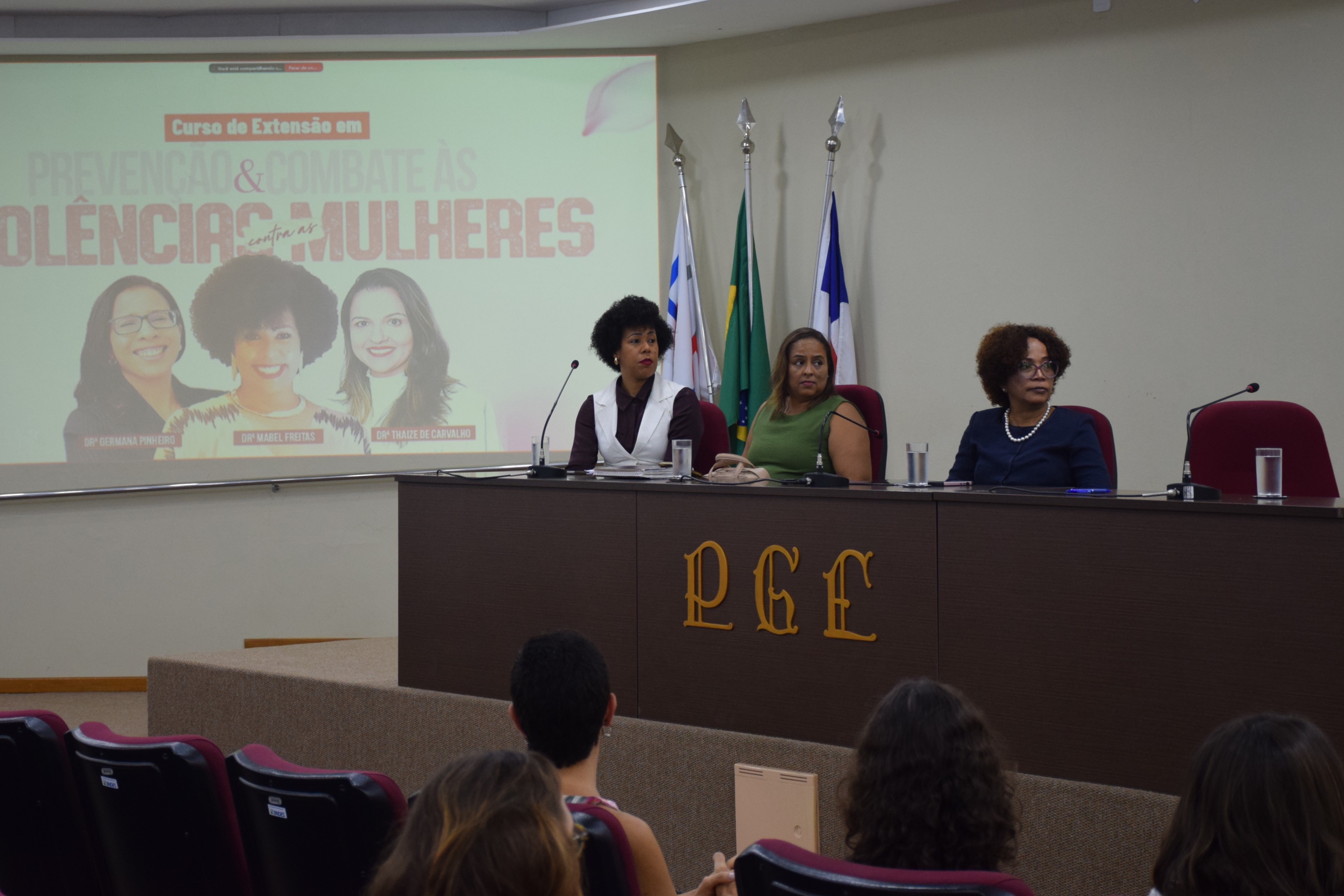 Na tarde desta terça-feira (29), a juíza Andremara dos Santos ministrou a palestra magna de abertura do “Curso de Extensão em Prevenção e Combate às Violências de Gênero”. Em sua fala, abordou questões centrais sobre a violência contra as mulheres e destacou a importância da perspectiva de gênero. O evento teve como propósito conscientizar e capacitar os participantes para uma atuação mais sensível e transformadora no enfrentamento dessa problemática social.