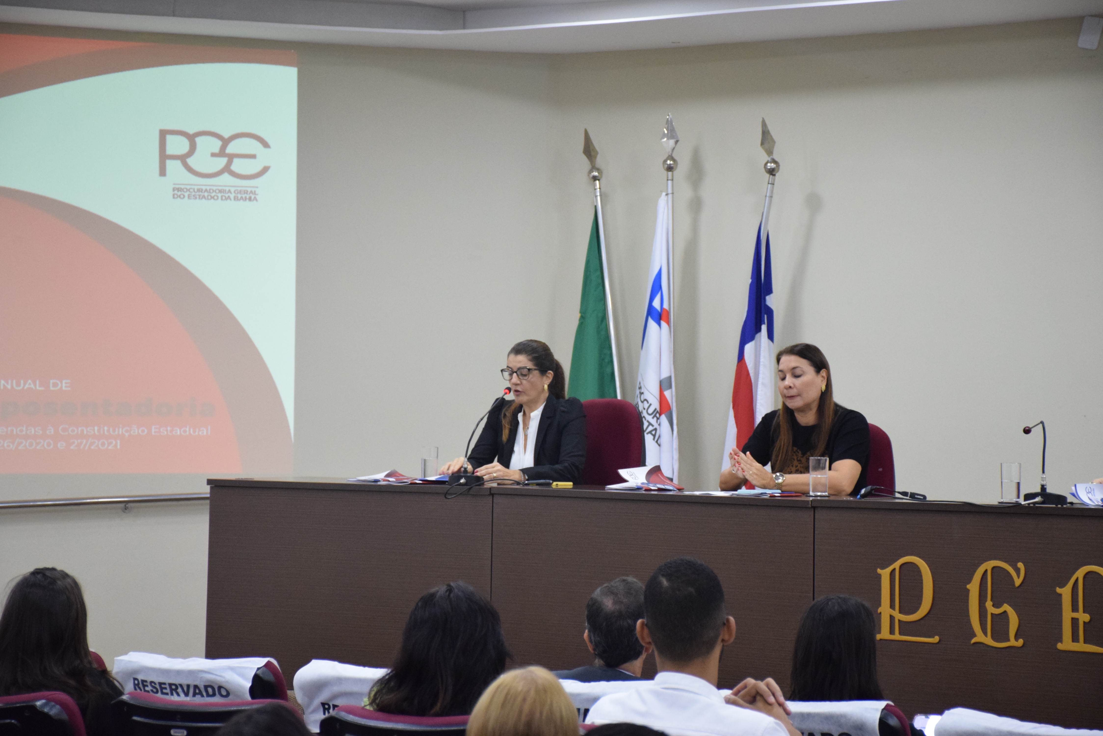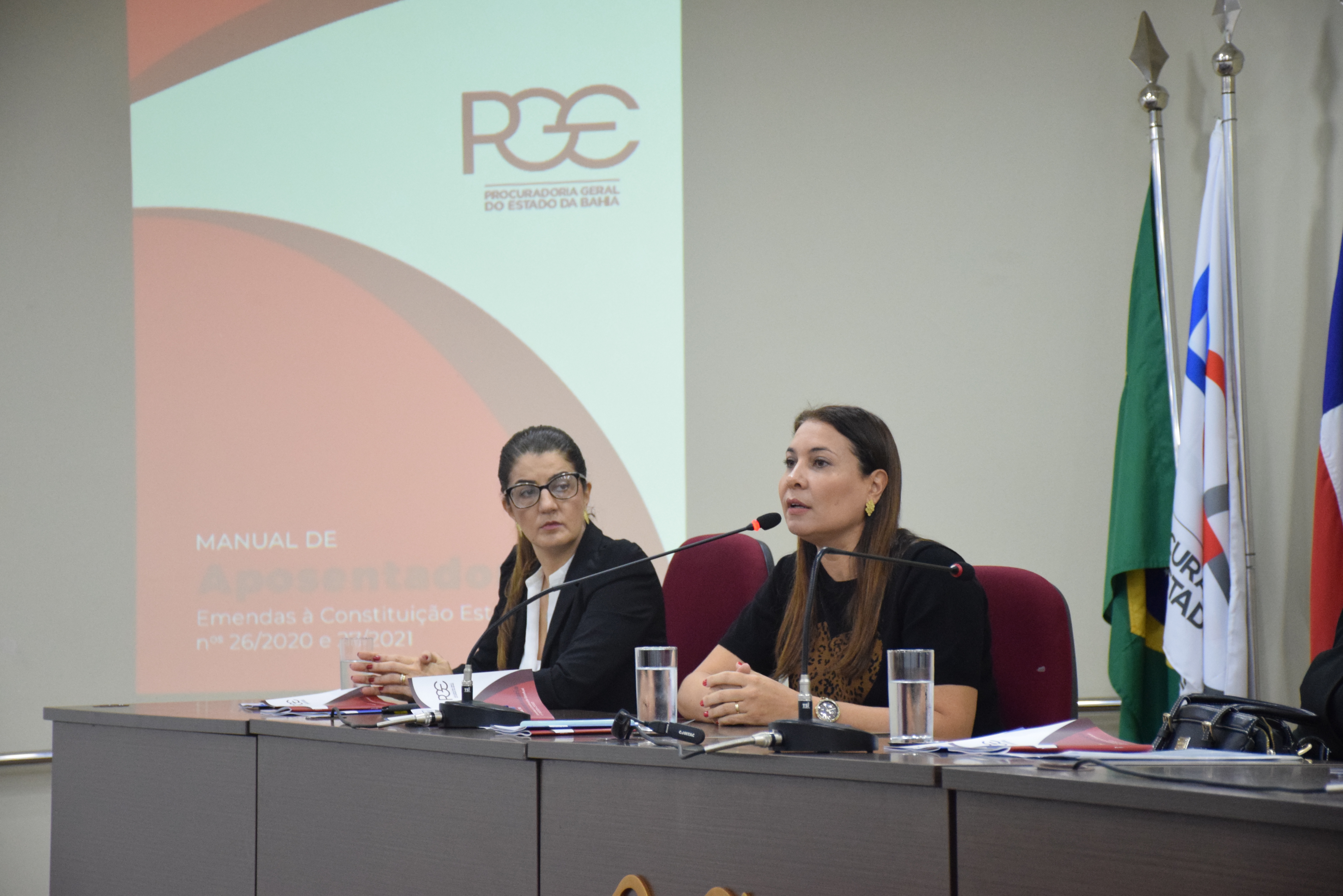 A Procuradoria Geral do Estado da Bahia (PGE-BA) lançou nesta quinta-feira (11/5), às publicações Manual de Aposentadoria e o Manual de Processos de Abono de Permanência, cujo objetivo é orientar os órgãos da administração pública direta e indireta, em especial as coordenações de recursos humanos, a melhor instruir e executar os processos de concessão dos benefícios, dando maior celeridade em sua tramitação. O evento foi aberto pela procuradora geral adjunta para assuntos judiciais, Patrícia Saback, a procuradora chefe da Procuradoria Administrativa, Eliana Andrade Figueiredo, e as procuradoras assistentes Mariana Miranda Moreira e Priscila Nagem Cardoso Marques, responsáveis pelos manuais.