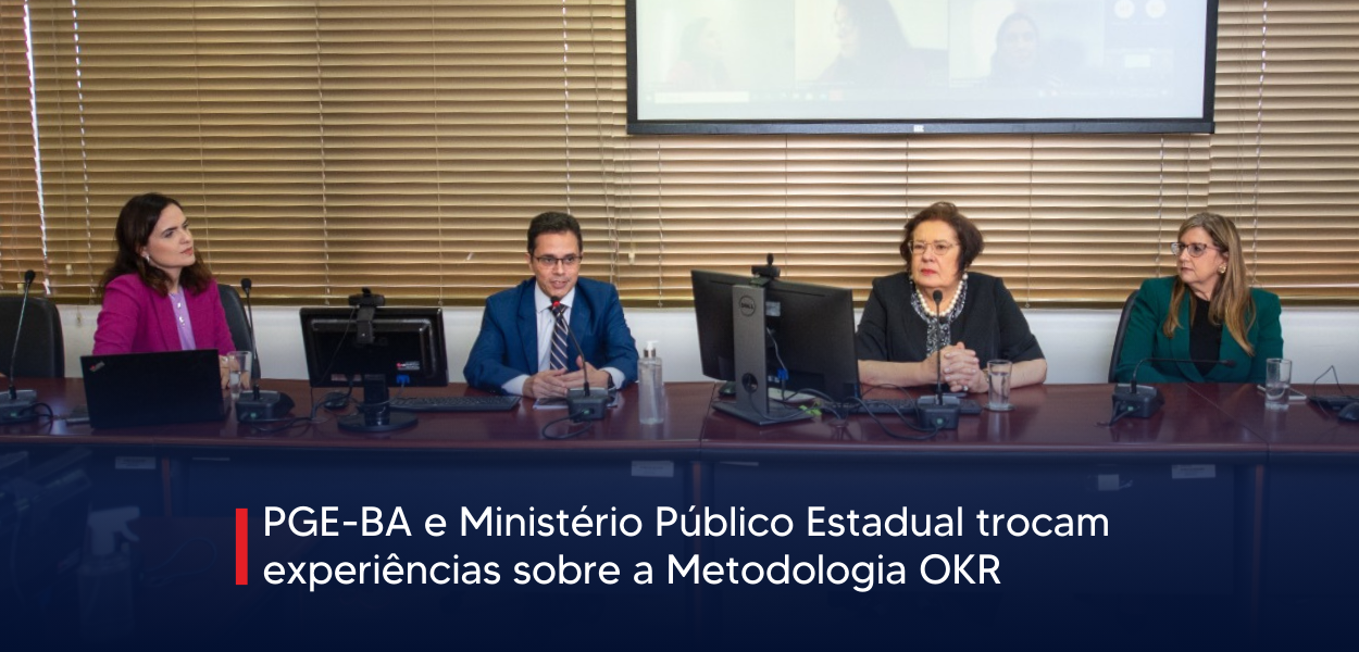 Aconteceu na tarde da última quinta-feira (31), uma reunião entre a Procuradoria Geral do Estado da Bahia (PGE-BA) e o Ministério Público Estadual para apresentação dos projetos de implantação de ORK (Objectives and Key Results), metodologia que está em fase de implantação nas duas instituições, bem como o compartilhamento de experiências no campo da gestão. Foi discutida ainda, a possibilidade de projetos conjuntos e a formatação de OKRs interinstitucionais.