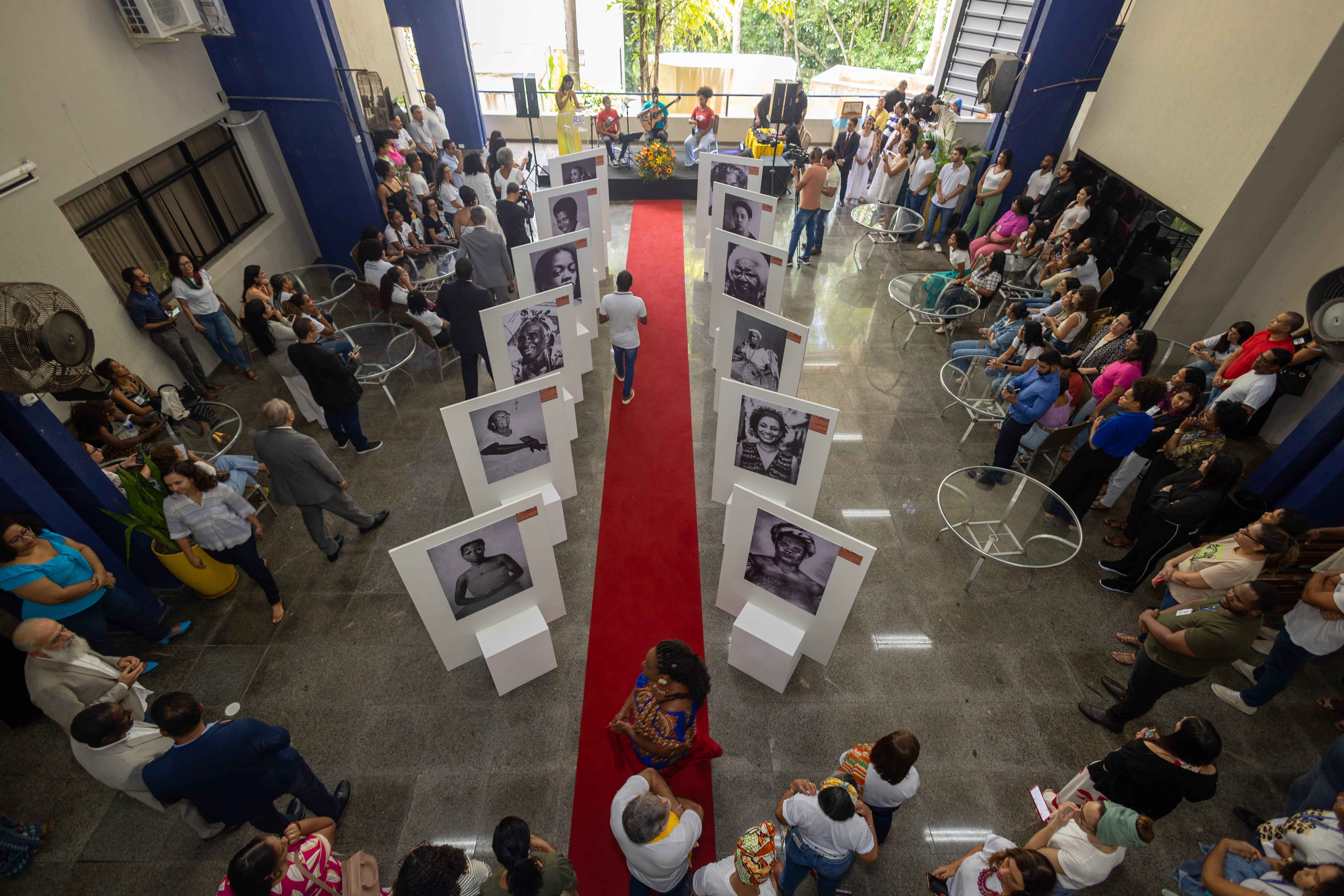 Aberto com o Coral da PGE-BA, que cantou a música Sorriso Negro, sob a regência da maestrina Poliana Hubner, o evento contou com a presença da procuradora geral do Estado, Bárbara Camardelli, que descerrou a fita de inauguração e foi a primeira a subir os Degraus da Reflexão, ao lado da representante da Secretaria de Promoção da Igualdade Racial, Aline Teles, seguidas pelas demais autoridades convidadas, que logo depois dirigiram-se ao Espaço de Convivência do órgão para apreciar a exposição 25 de julho, 25 mulheres: Negritudes, Circularidades e Resistências pela Liberdade.