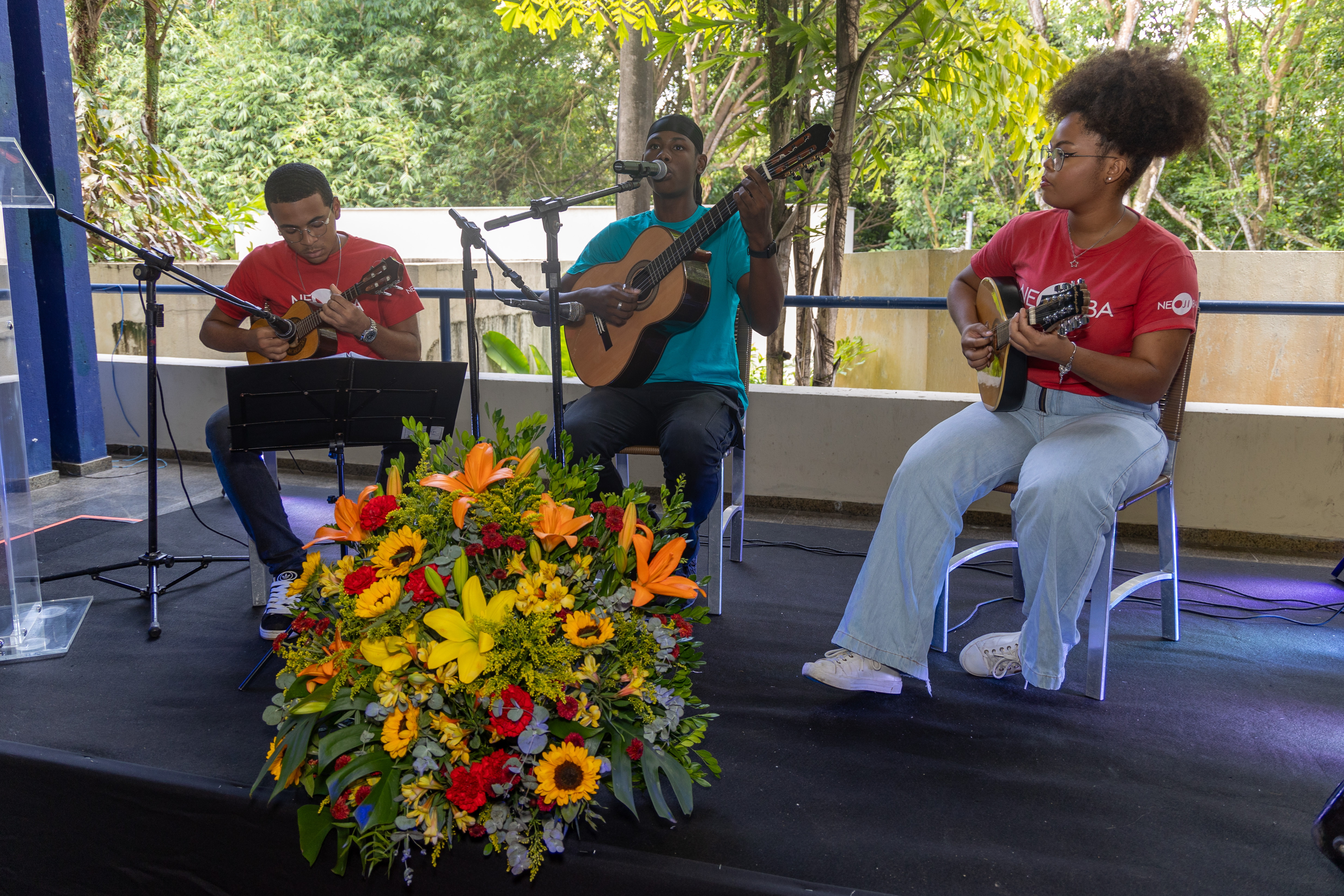 Autoridades e representantes de entidades sociais permaneceram no Espaço de Convivência, onde aconteceu a assinatura da Política de Equidade de Gênero, Raça e Diversidade da Procuradoria Geral do Estado da Bahia, celebrada ao final com a apresentação de um trio de cordas da Orquestra NEOJIBA (Núcleos Estaduais de Orquestras Juvenis e Infantis da Bahia), formado por Pedro Souza, Eliseu Henrique e Zaila Gois.