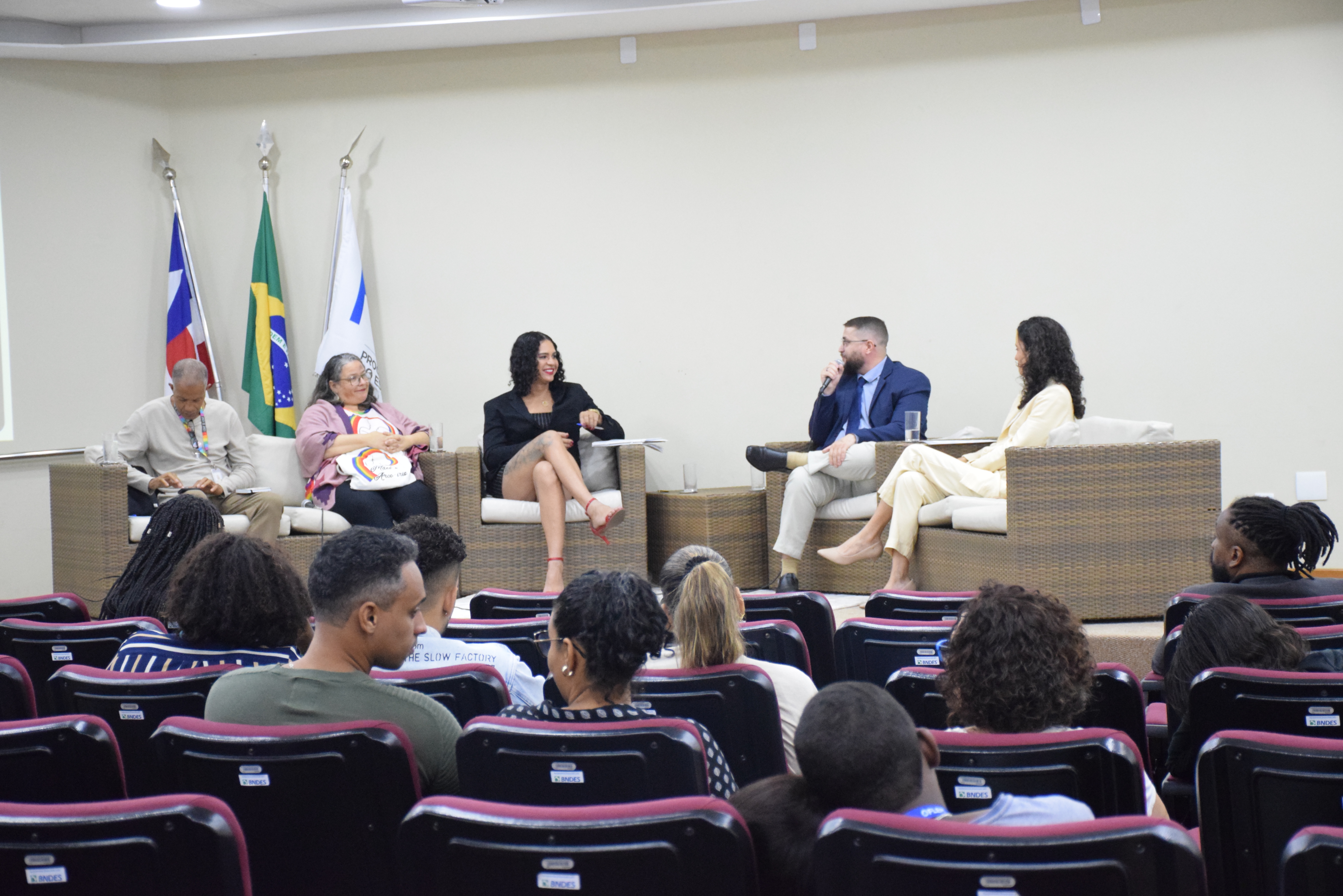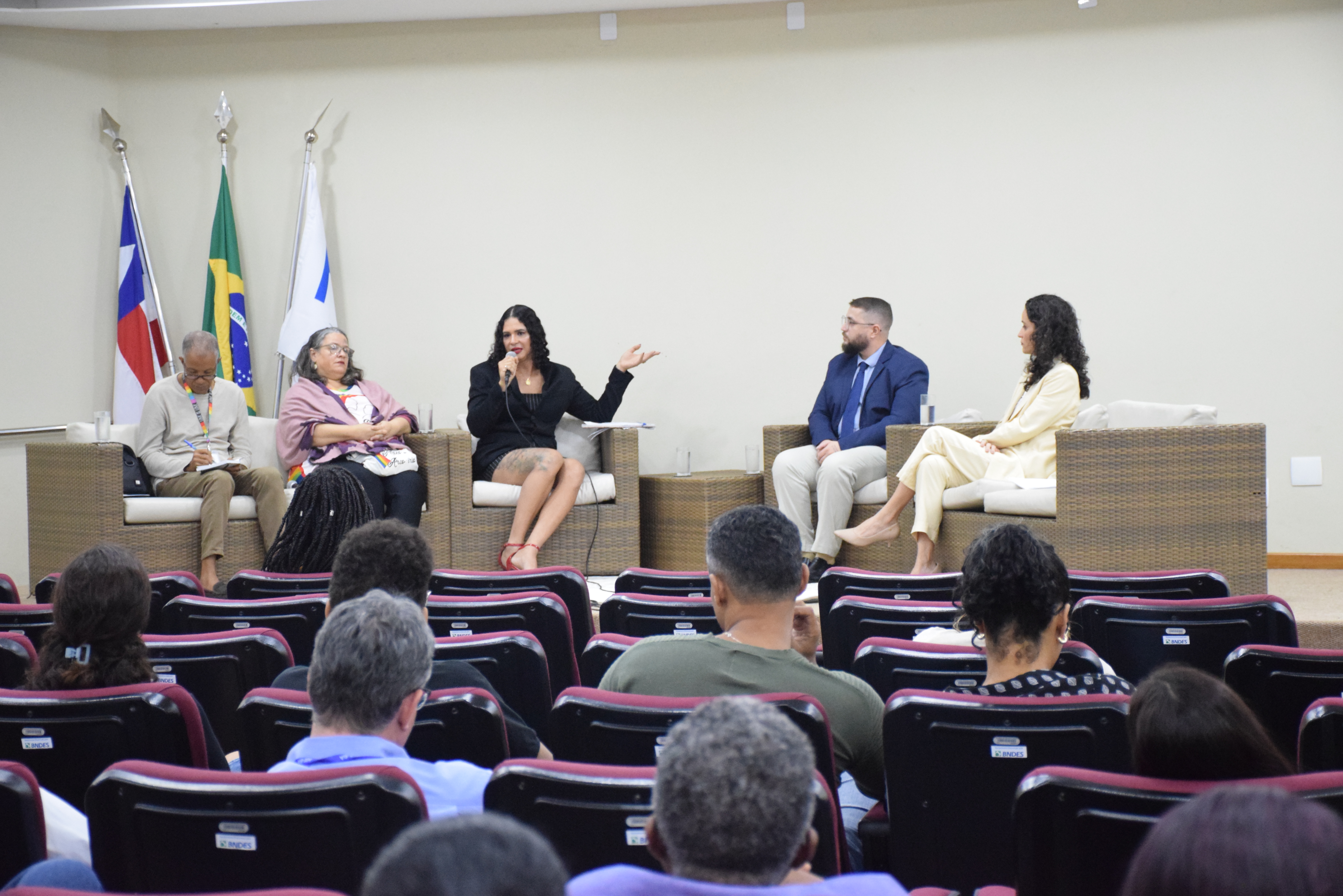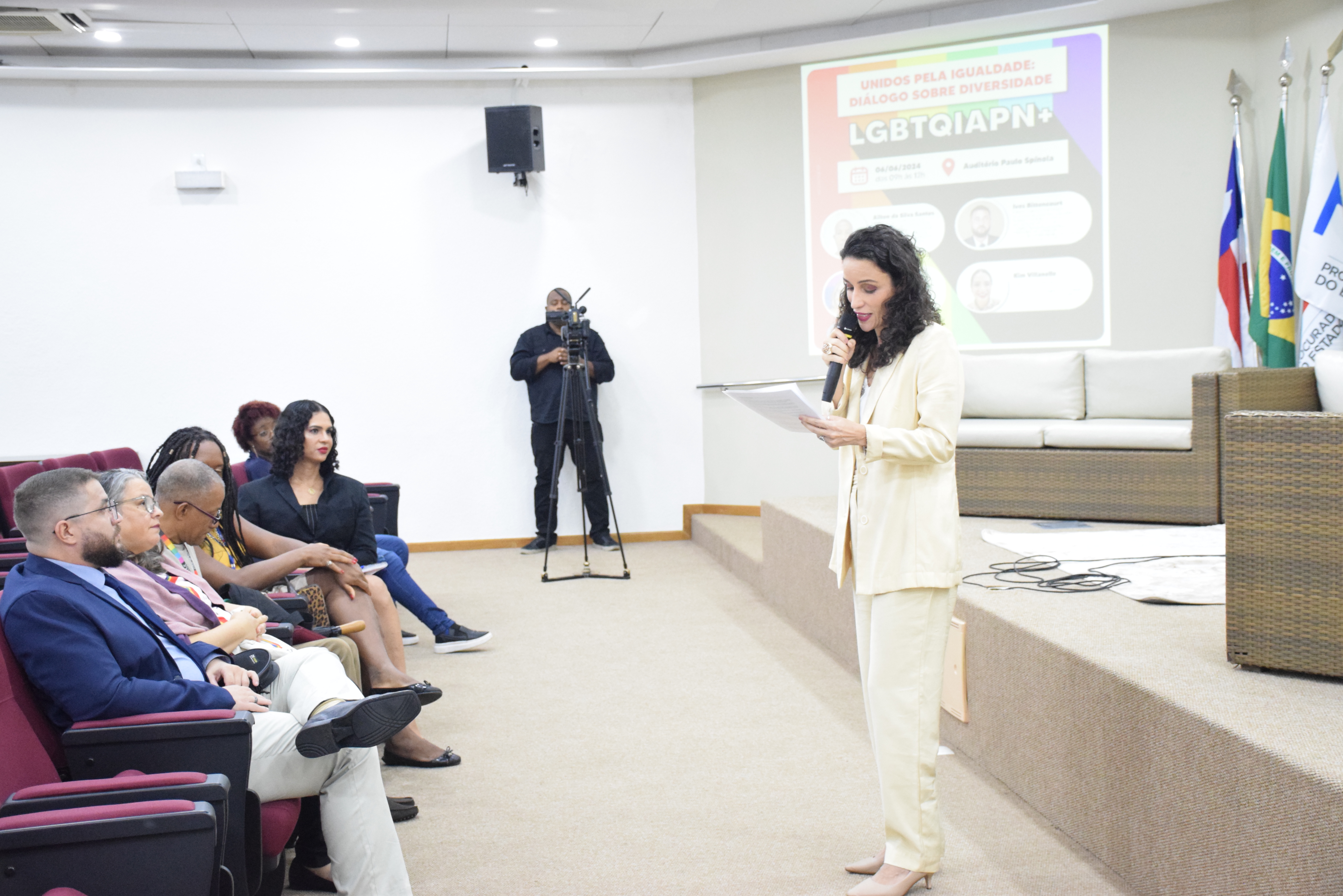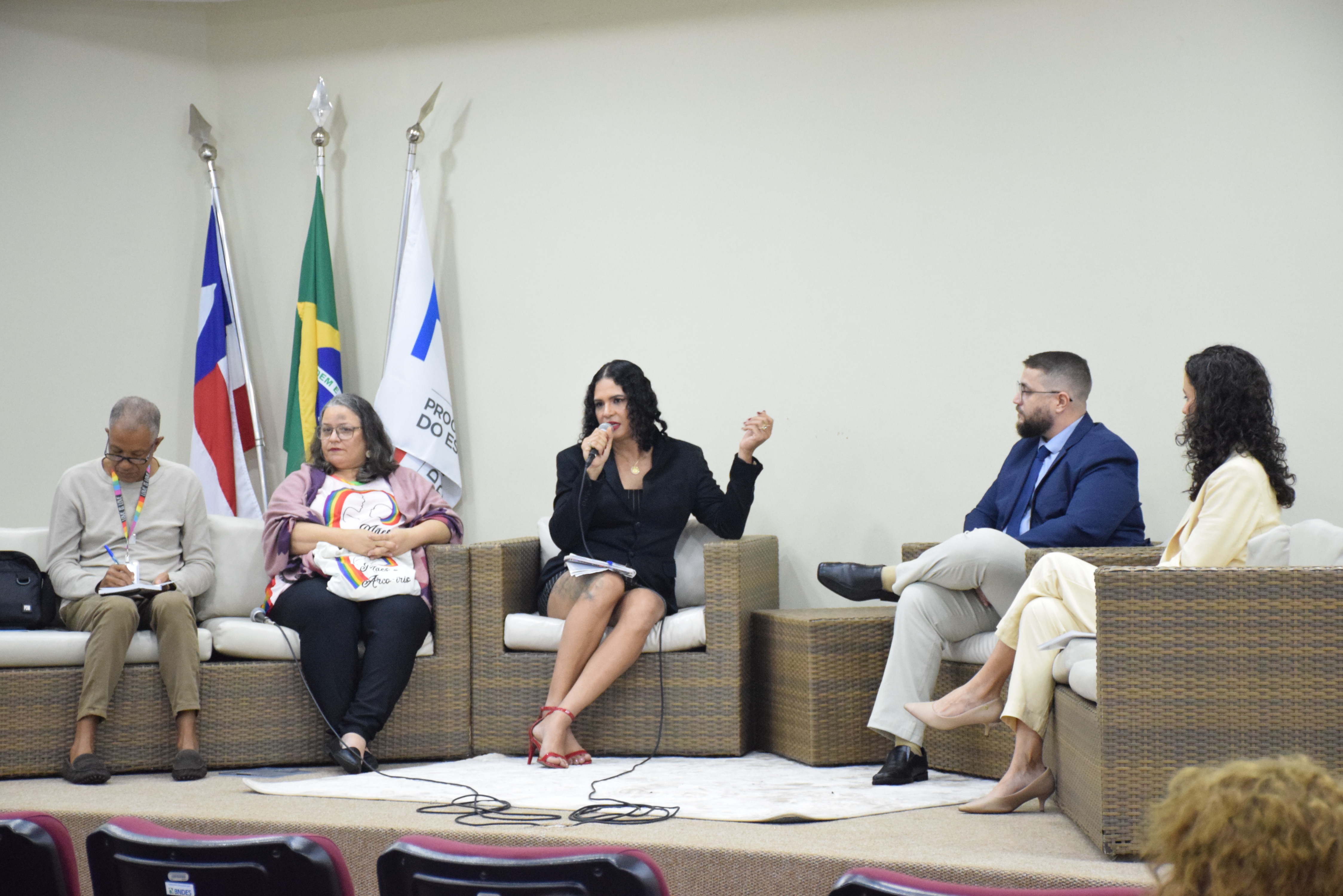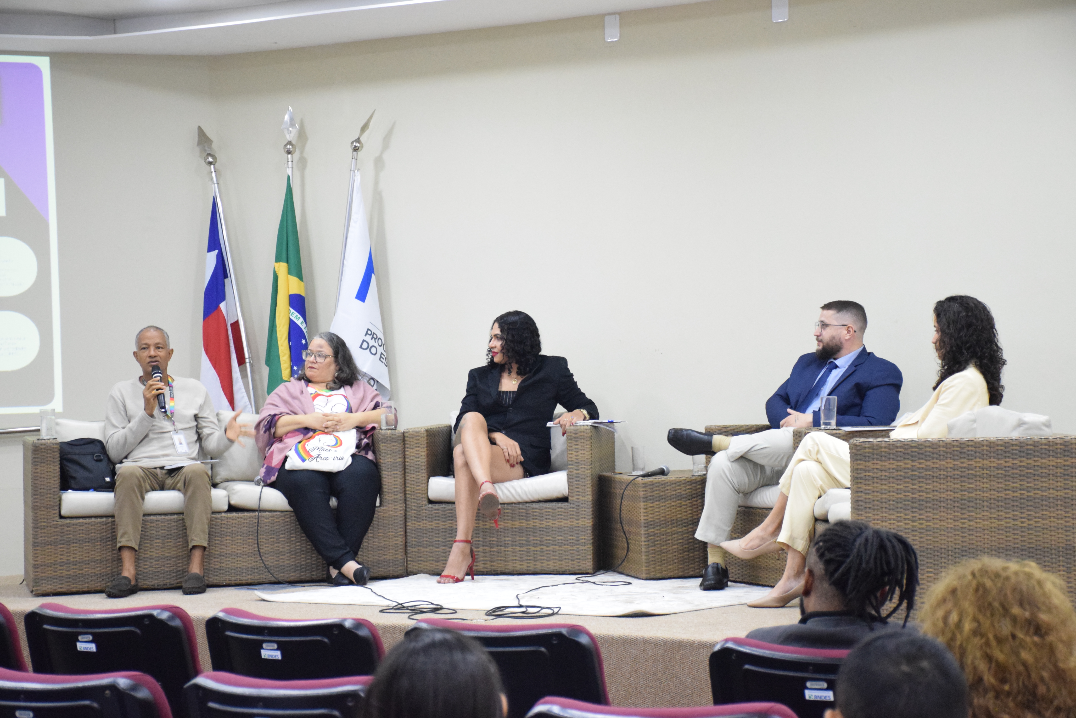Aconteceu na manhã desta quinta-feira (06), no Auditório Paulo Espínola da PGE-BA, um encontro que reuniu lideranças que lutam por equidade, igualdade e respeito. Na oportunidade Cristiane Sarmento, Ailton da Silva Santos, Ives Bittencourt e Kim Villanelle discutiram aspectos fundamentais relacionados ao tema, como educação, inclusão, política pública e acolhimento da comunidade LGBTQIAPN+ na sociedade.