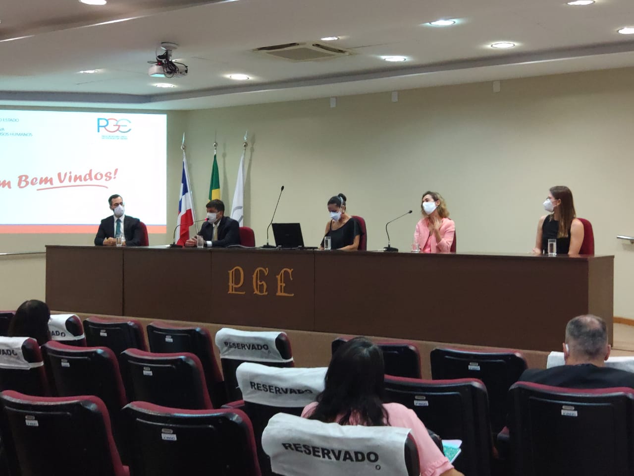 Em razão das regras impostas pela COVID-19, a recepção foi feita conforme Protocolo da Diretoria Geral do órgão e contou com a participação da procuradora geral em exercício, Luciane Croda, do procurador chefe da Judicial, Frederico Valverde, e dos procuradores coordenadores do NDM-PJ, Mariana Wanderley, Marcela Pinheiro e Eduardo Sales, além do gerente do projeto, responsável pela implantação do novo núcleo, o analista de Procuradoria Vitor Sousa.
