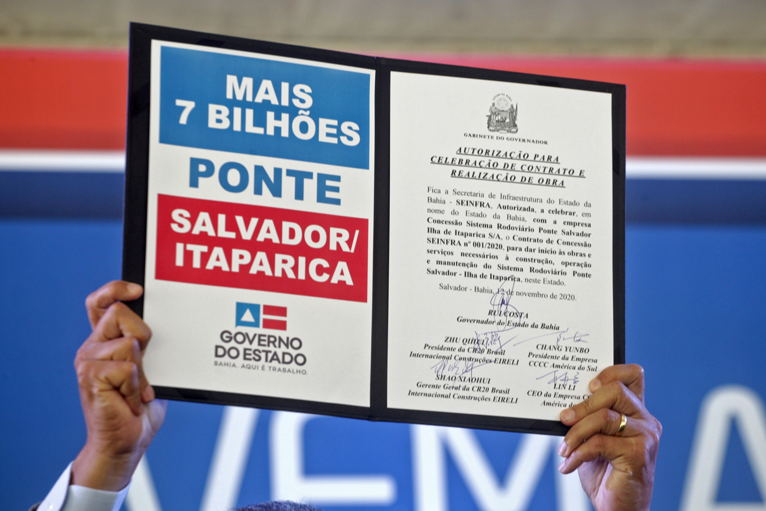 O procurador geral do Estado da Bahia, Paulo Moreno Carvalho, acompanhou, na manhã de ontem (12), a solenidade de assinatura do contrato para construção da ponte Salvador-Itaparica. O documento foi assinado pelo governador Rui Costa e pelo consórcio chinês que irá realizar a obra, formado pelas empresas China Communications Construction Company (CCCC Ltd), CCCC South America Regional Company (CCCCSA) e China Railway 20 Bureau Group Corporation (CR20).