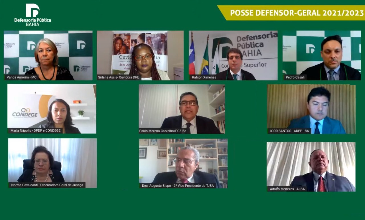 O Procurador Geral do Estado Paulo Moreno participou na tarde de hoje (02), da cerimônia virtual de posse de Rafson Saraiva Ximenes que foi reconduzido ao cargo de defensor público geral da Defensoria Pública do Estado da Bahia – DPE/BA.
