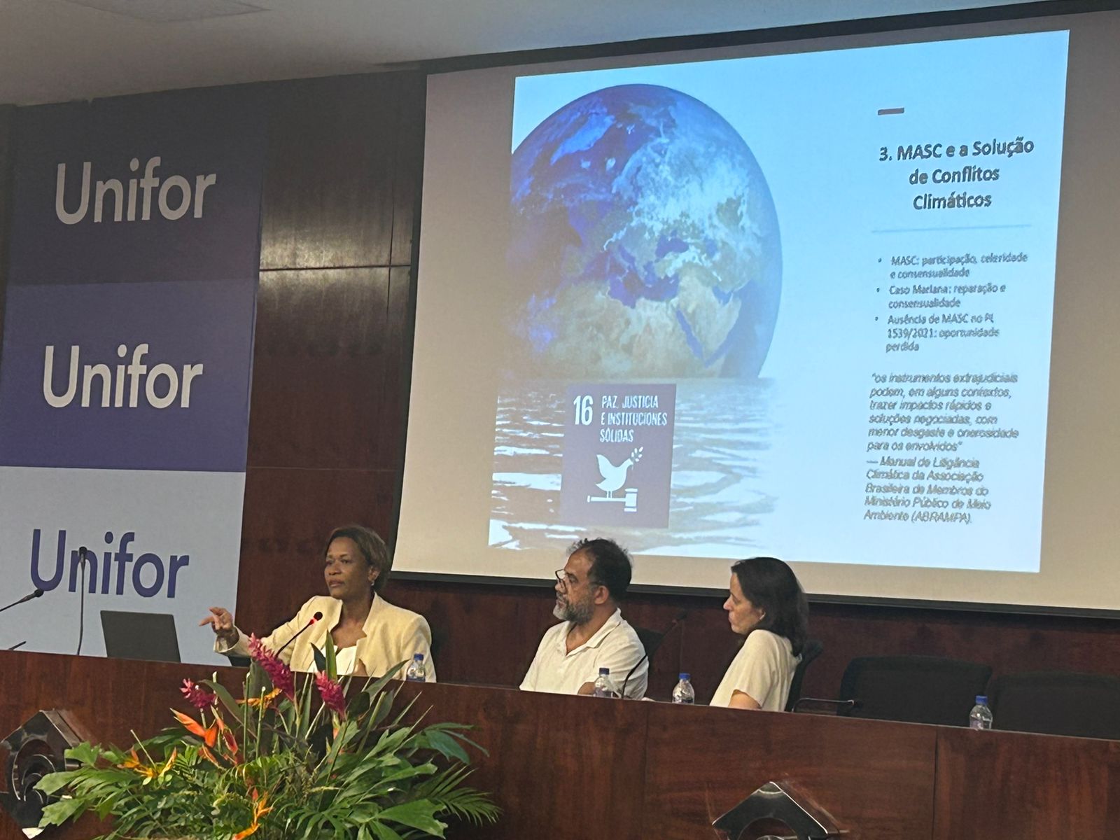 Além delas, a Procuradora do Estado Renata Fabiana Santos Silva integrou o painel “Justiça Climática e os Impactos Sociais das Mudanças Climáticas”, realizado na tarde do dia 21 de maio. A mesa foi presidida pela professora Marilucia Andrade (UNIFOR) e contou com a participação de especialistas como Hugo Gonzales Elias (Argentina), Isabella Franco Guerra (Universidade Estácio de Sá), José Rubens Morato Leite (UFSC) e Julia Mattei (UNIFOR).