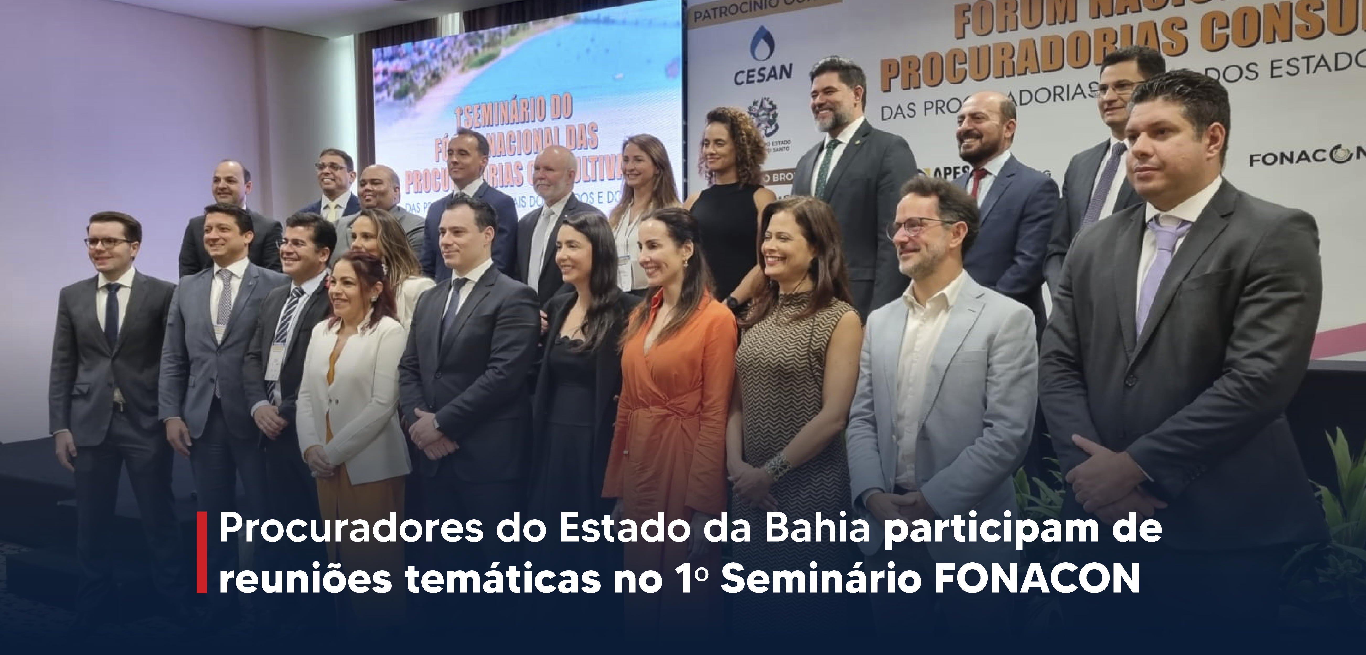 Está sendo realizado, desde quarta-feira (13) até o dia de hoje (15), o 1º Seminário FONACON. O evento, que acontece em Vitória, Espírito Santo, contou com a participação de procuradores baianos em diversas reuniões temáticas. Participaram dos encontros de hoje (15), a Procuradora Geral do Estado da Bahia, Bárbara Camardelli, a corregedora, Aline Solano Souza Casali Bahia, e a procuradora do Estado, Alzemeri Martins Ribeiro de Britto.