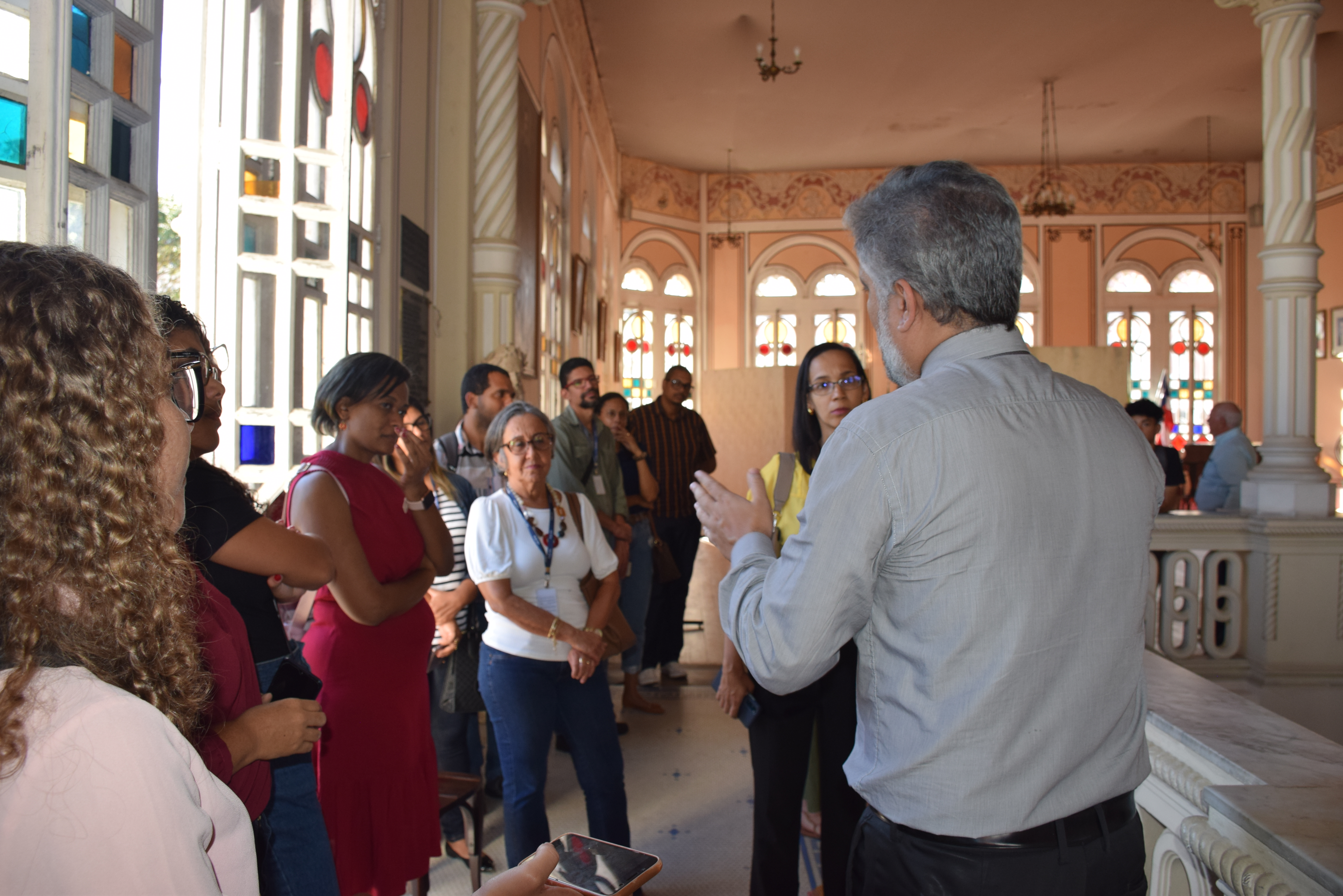 Aconteceu nesta terça-feira (8), mais uma ação do projeto PGE Mais Cultura. A atividade tem como objetivo oportunizar o acesso à cultura e conhecimento, saindo do ambiente organizacional e promovendo a integração e engajamento entre os servidores da PGE-BA. Realizado pelo Centro de Estudos e Aperfeiçoamento, os visitantes tiveram a oportunidade de conhecer um pouco mais sobre a história do Gabinete Português de Leitura.