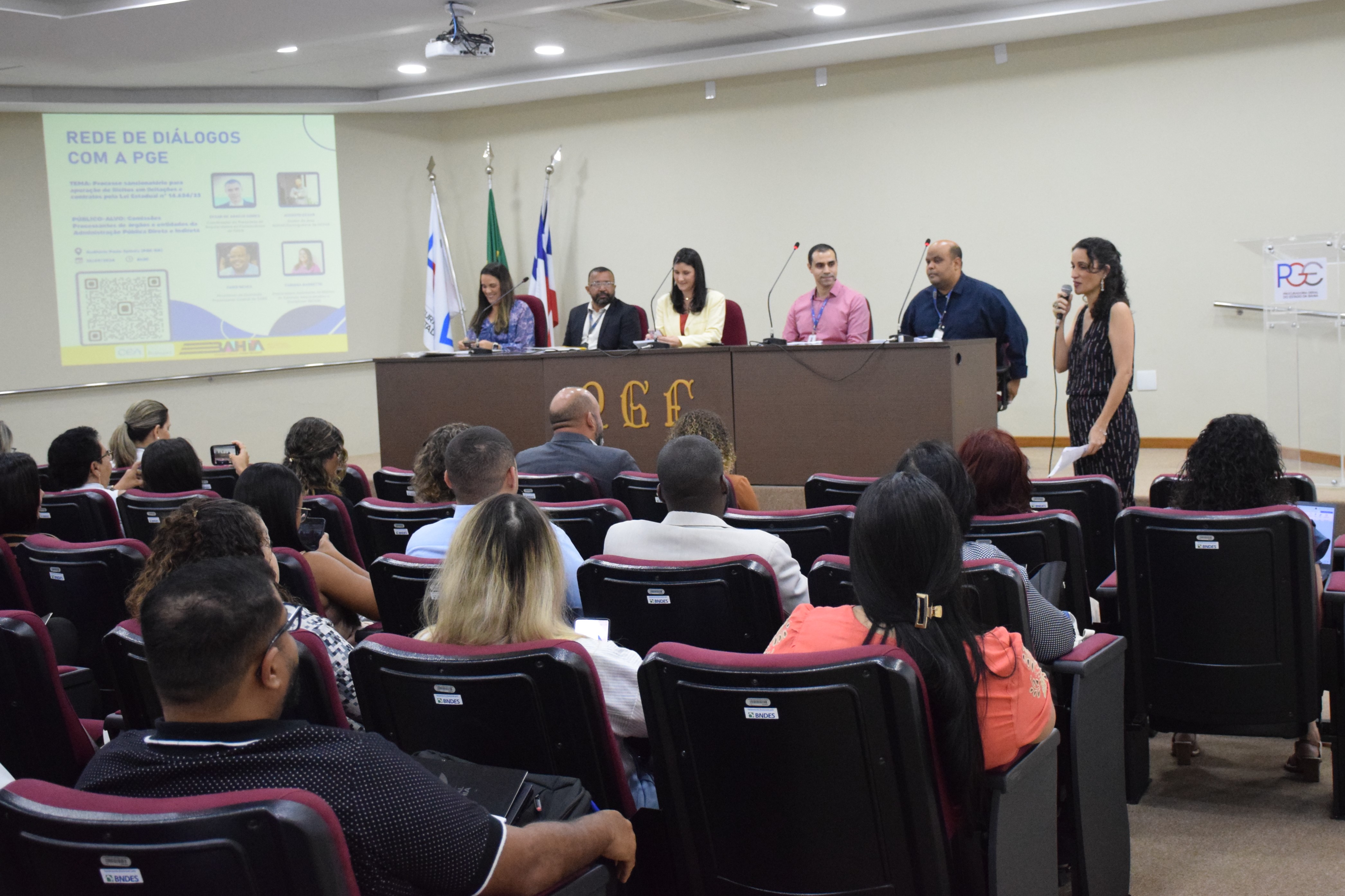 A Procuradoria Geral do Estado da Bahia (PGE-BA), por meio do Centro de Estudos e Aperfeiçoamento (CEA), realizou hoje (19) no Auditório Paulo Spínola a 11ª edição do projeto Rede de Diálogos com a PGE. Com o tema Sanções na nova Lei de Licitações, o encontro foi direcionado às Comissões Processantes de órgãos e entidades da Administração Pública Direta e Indireta.