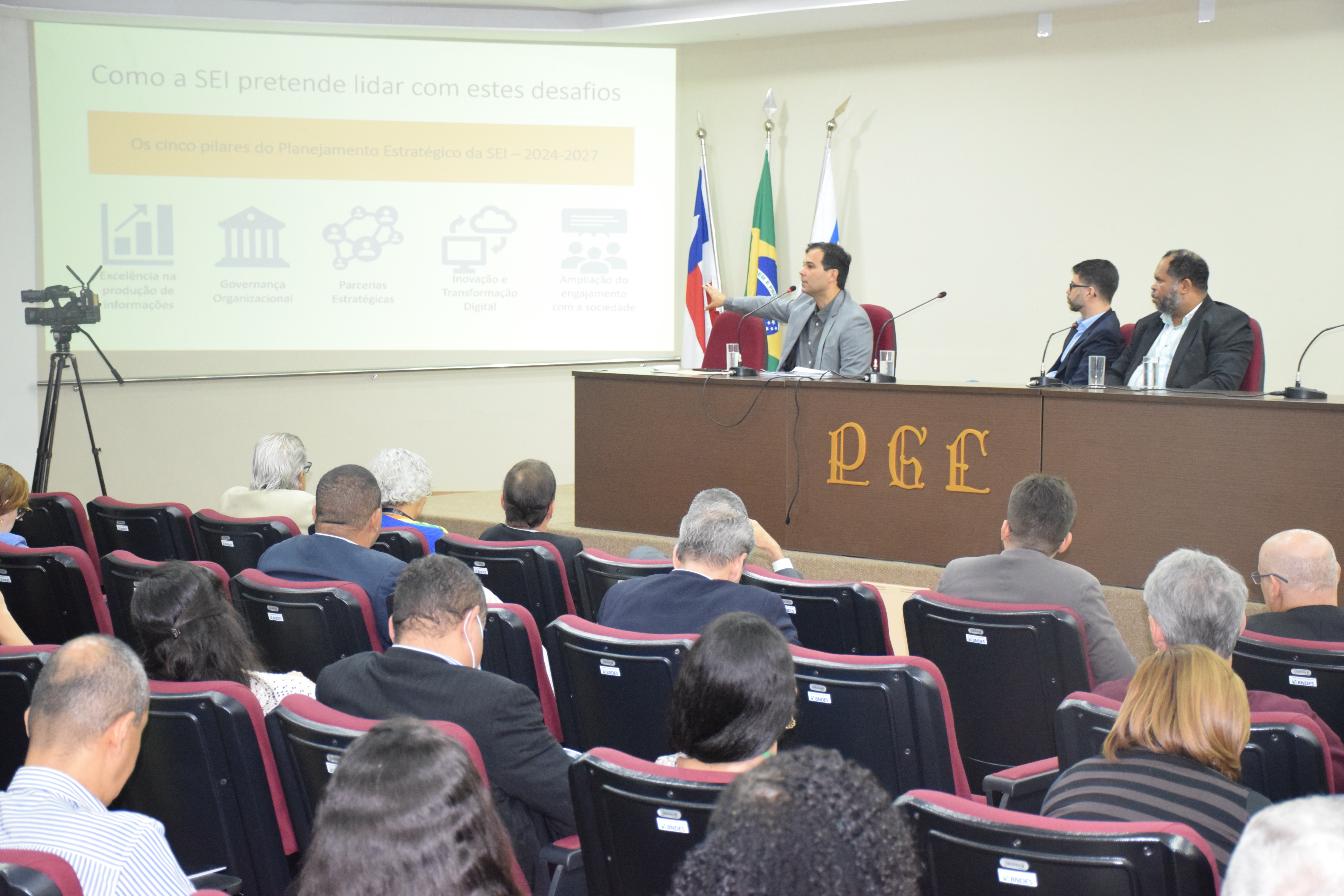 A Procuradoria Geral do Estado (PGE-BA), por meio do seu Centro de Estudos e Aperfeiçoamento, em parceria com a Universidade Coorporativa da Secretaria de Planejamento (Seplan), a Universidade Federal da Bahia (UFBA) e a Superintendência de Estudos Econômicos e Sociais da Bahia (SEI) realizaram nesta quinta-feira (25), no auditório Paulo Spínola, o seminário "Políticas Públicas e Gestão de Dados".