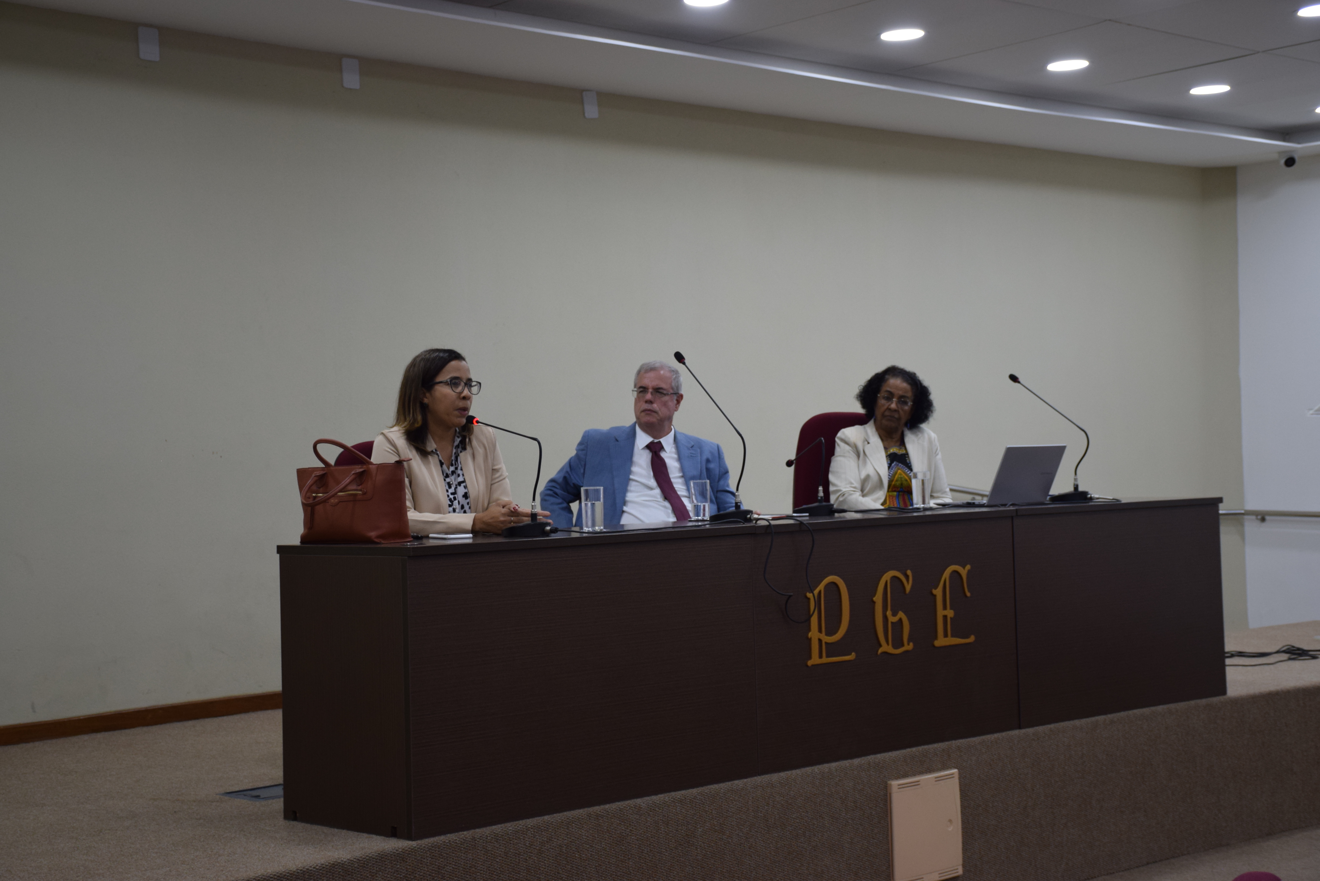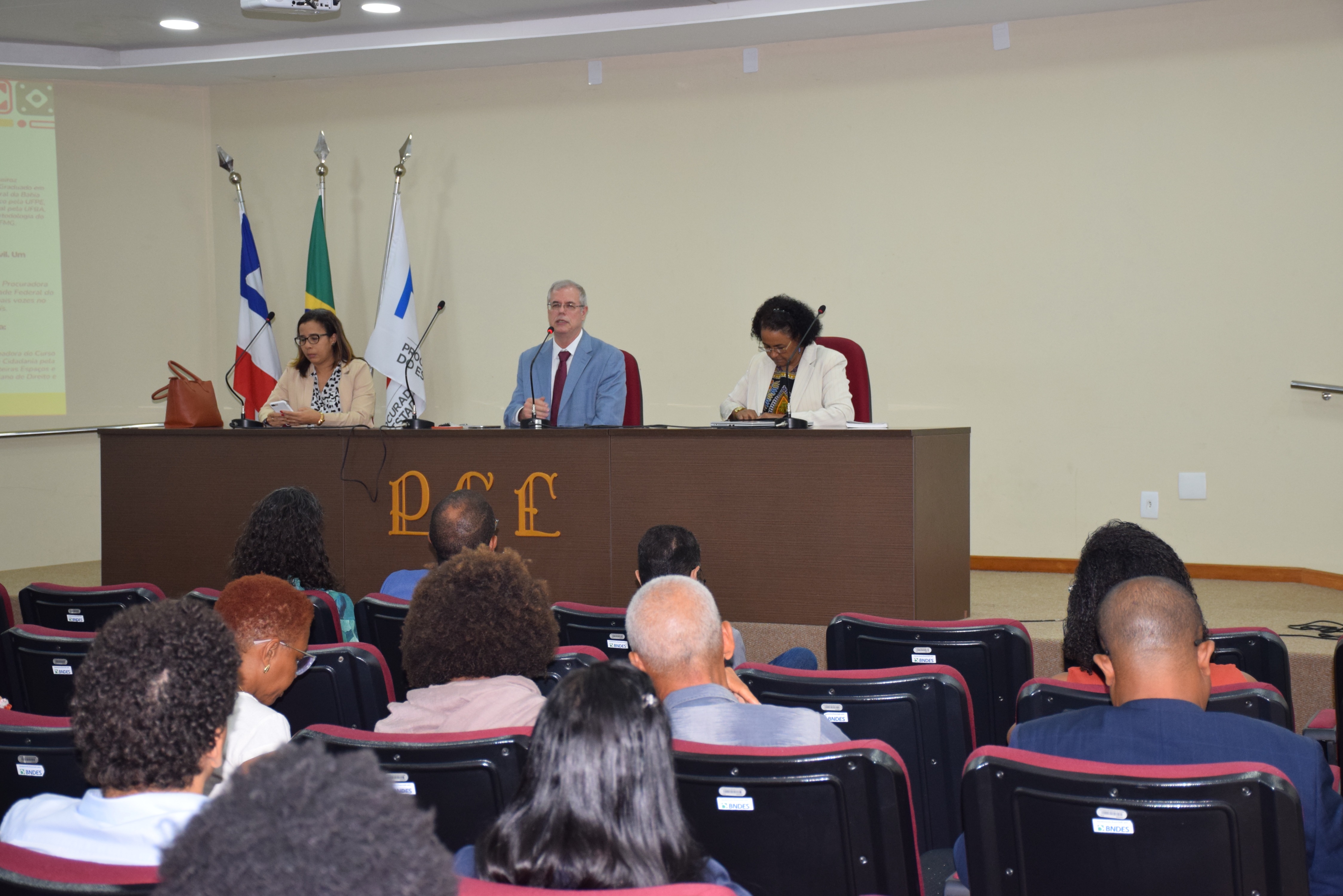 O seminário contou com a participação de Dora Bertúlio, mestre em Direito Público e procuradora federal aposentada pela Advocacia-Geral da União (AGU), e Germana Pinheiro, pró-reitora de Graduação, Extensão e Ação Comunitária da Universidade Católica do Salvador (UCSAL) e doutora em Políticas Sociais e Cidadania, além da mediação do procurador do Estado e mestre em Direito Público, Luiz Viana Queiroz.