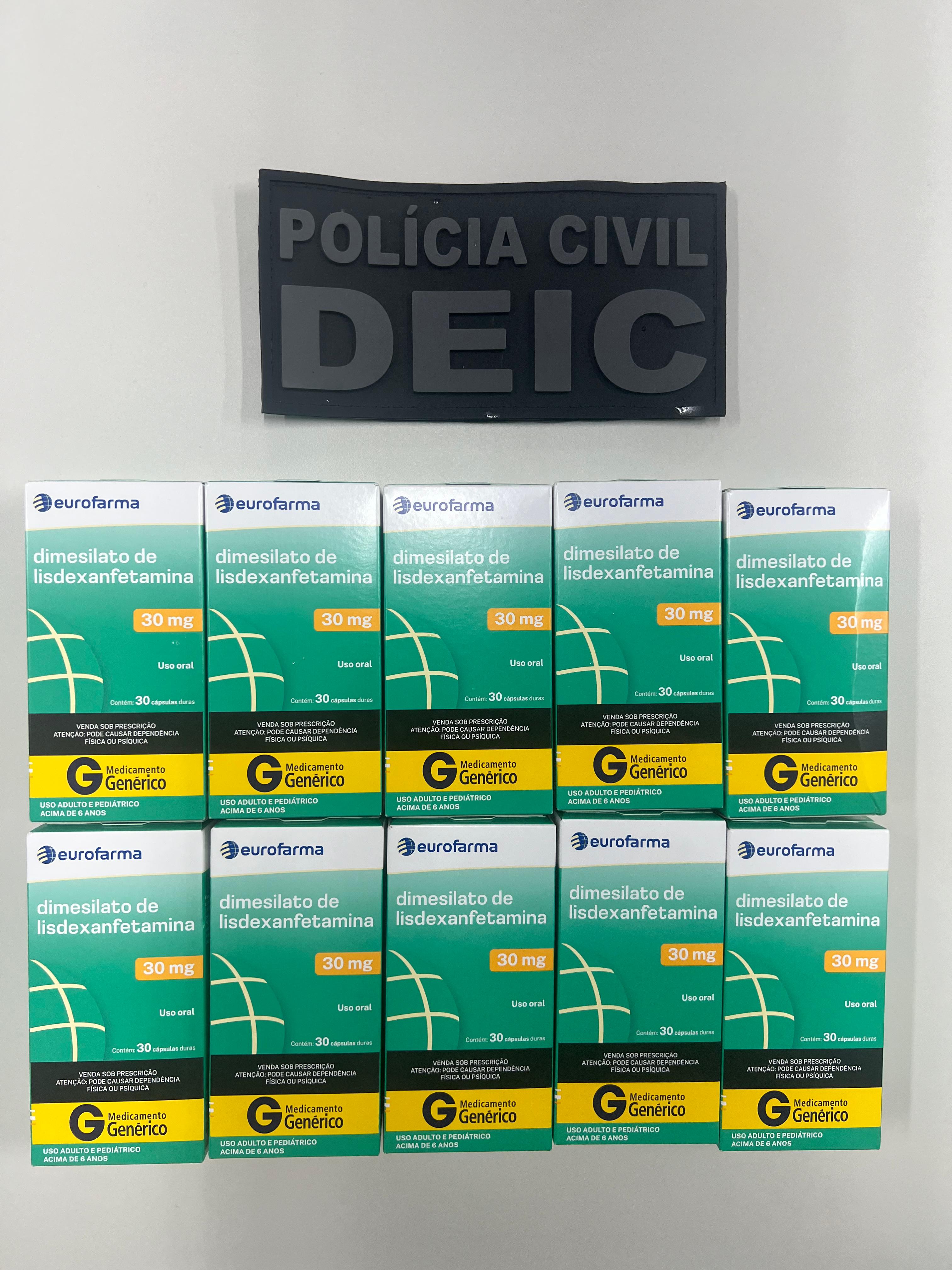 Por meio da Delegacia de Repressão a Furtos e Roubos (DRFR), vinculada ao Departamento Especializado de Investigações Criminais (DEIC), os policiais localizaram o suspeito em posse de 10 caixas de medicamentos avaliados em R$ 4 mil. A medicação, dimesilato de lisdexanfetamina, genérica da marca comercial Venvanse, é indicada para o tratamento de Transtorno de Déficit de Atenção e Hiperatividade (TDAH) e era oferecida de forma irregular, sem nota fiscal e licença para o comércio, para a pessoas interessadas em melhorar o desempenho cognitivo.