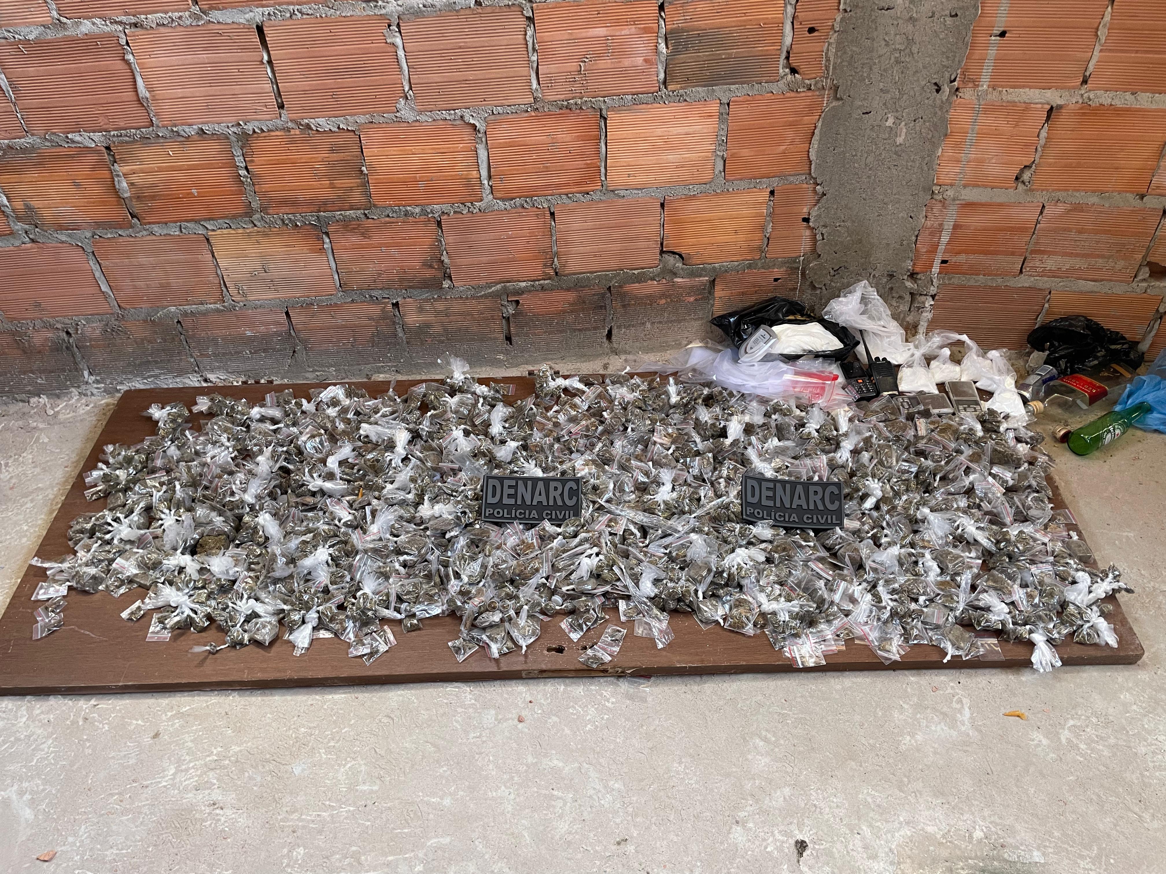 Materiais apreendidos incluem entorpecentes, balanças e rádios comunicadores