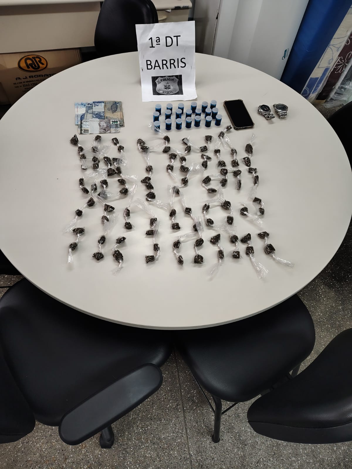 Durante diligências na Avenida Joana Angélica, na região conhecida como “Rua da Frutas”, um homem foi preso em flagrante por tráfico de drogas. Cento e dezesseis “trouxas” de maconha, a quantia de R$ 210, dois relógios e um celular foram apreendidos com o suspeito.