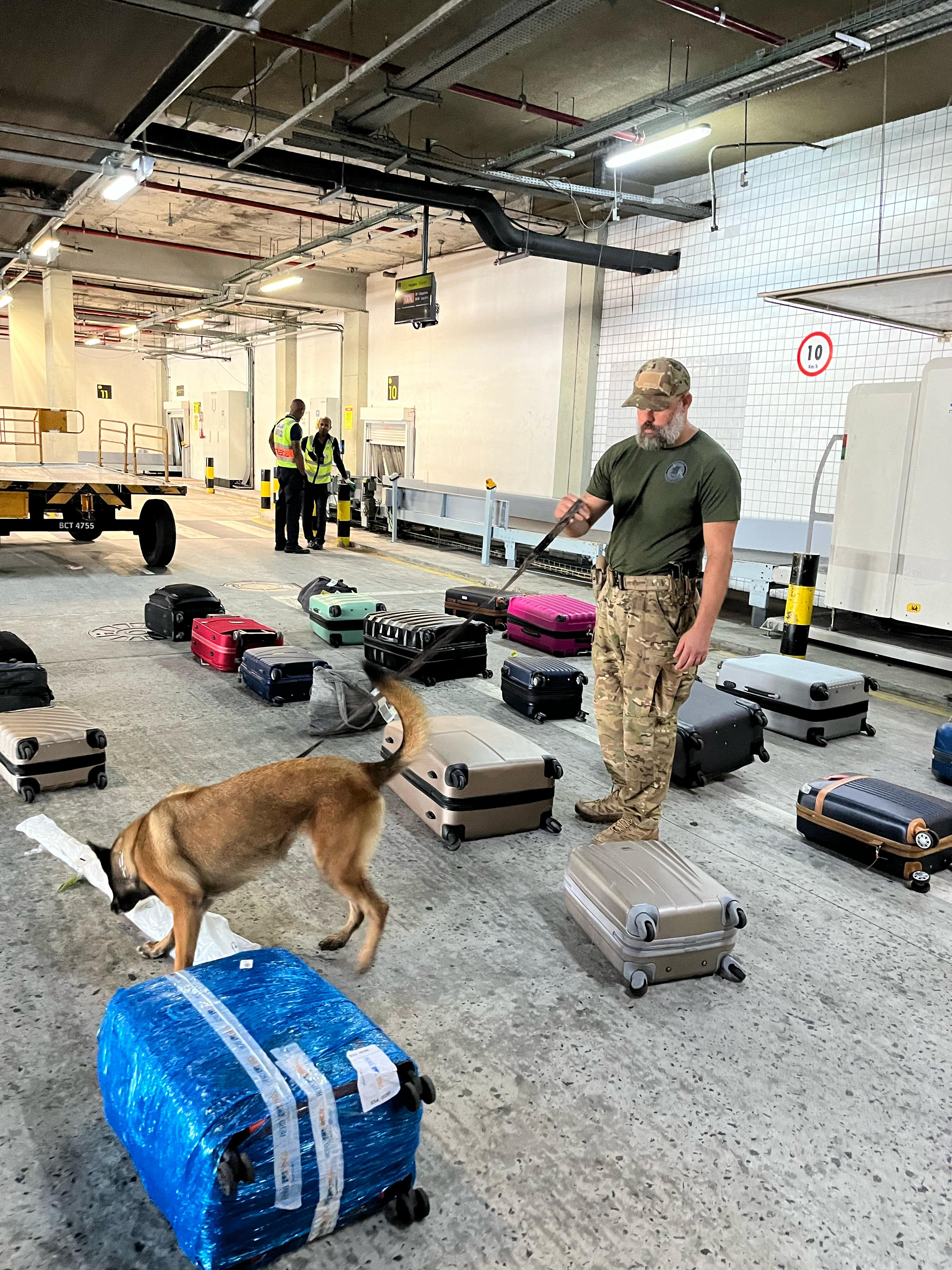 Três cães da Core, treinados desde filhotes para identificar o cheiro dos entorpecentes mesmo camuflados entre itens com odores muito ativos, participaram da ação como farejadores na busca de drogas. A operação se estende durante todo o período do Carnaval, com ações integradas entre as Forças de Segurança e a Receita Federal.