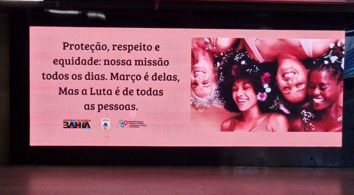 O DPMCV preparou uma exposição, com painéis eletrônicos espalhados por diversos pontos da capital, com o tema da campanha deste ano: “Proteção, respeito e equidade: nossa missão todos os dias. Março é delas, mas a luta é de todas as pessoas”. O primeiro já foi instalado na nova Estação da Lapa, exibindo dados e estatísticas sobre a violência contra a mulher, destacando a importância da prevenção e do apoio às vítimas. No local, também está sendo realizado atendimento ao público no posto da Delegacia Virtual da Polícia Civil, das 9h às 14h.