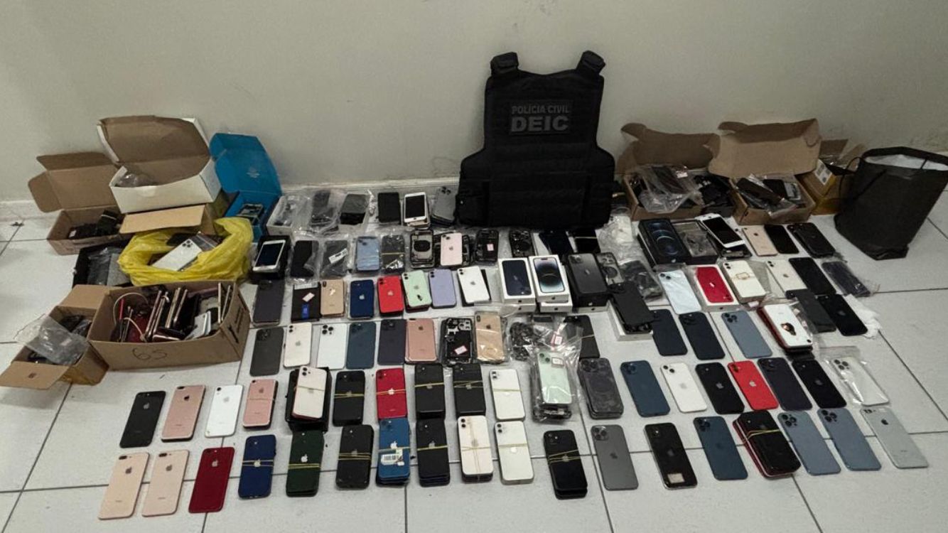 O proprietário do estabelecimento foi preso em flagrante com um iPhone 15 PRO MAX, que havia sido roubado no dia último dia 4, na capital baiana. No imóvel, localizado no bairro Jardim Petrolar, os policiais também encontraram uma vasta quantidade de aparelhos, alguns parcialmente desmontados.