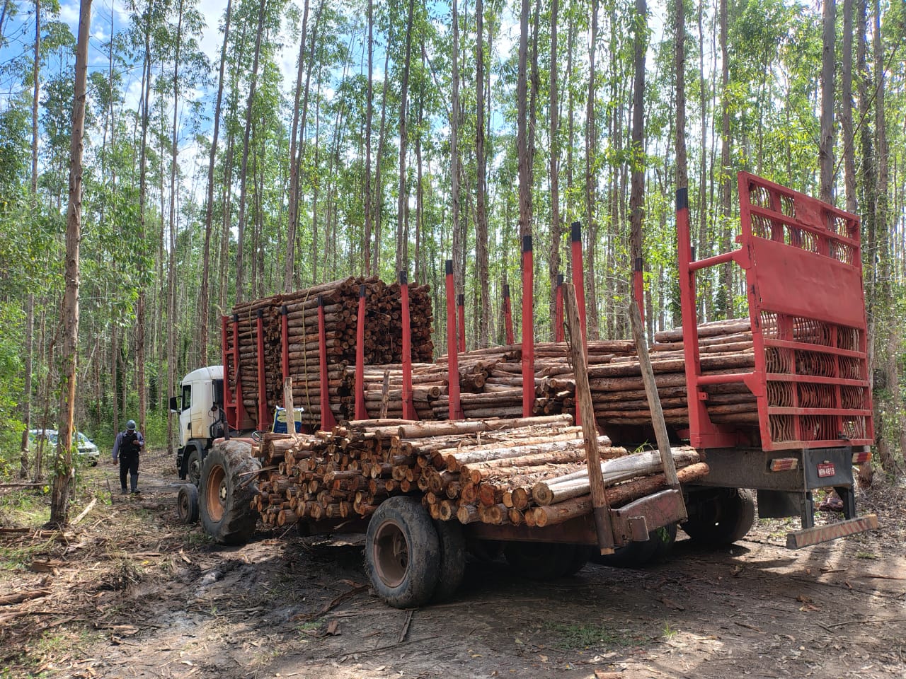 O condutor, de 53 anos, alegou que a carga pertencia ao irmão e que havia sido retirada da área da empresa. No mesmo local, os policiais identificaram outro homem, de 57 anos, operando um trator utilizado para transportar a madeira até o caminhão, contribuindo diretamente com a ação criminosa.