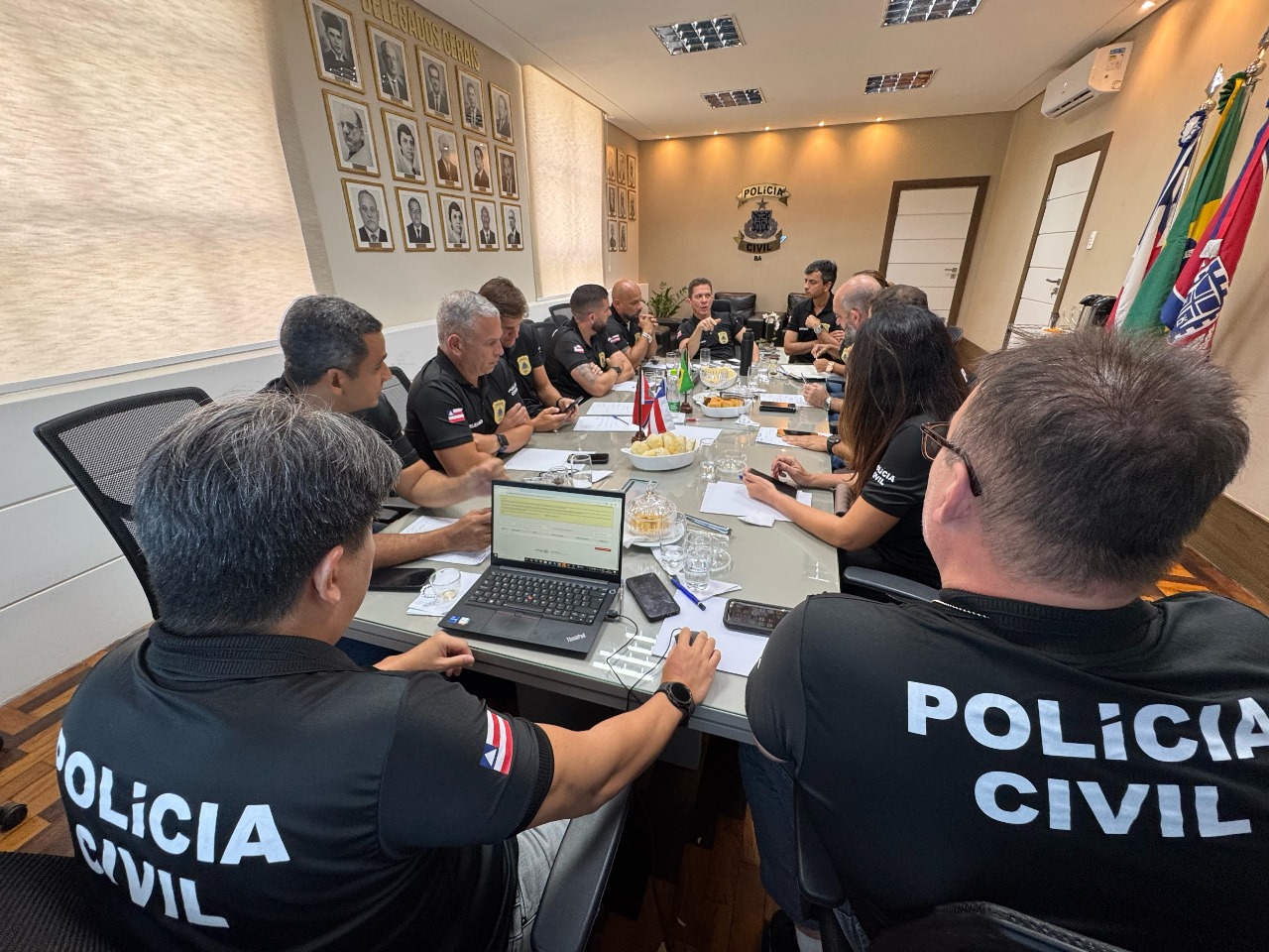 Desde as primeiras horas da manhã de hoje, o delegado-geral André Viana, a delegada-geral adjunta Márcia Pereira, o chefe de gabinete, delegado Ivo Tourinho, e o assessor executivo, delegado Jorge Figueiredo se reúnem com diretores dos Departamentos Operacionais para a elaboração de uma ação integrada contra criminosos responsáveis pelo ataque no Lobato.