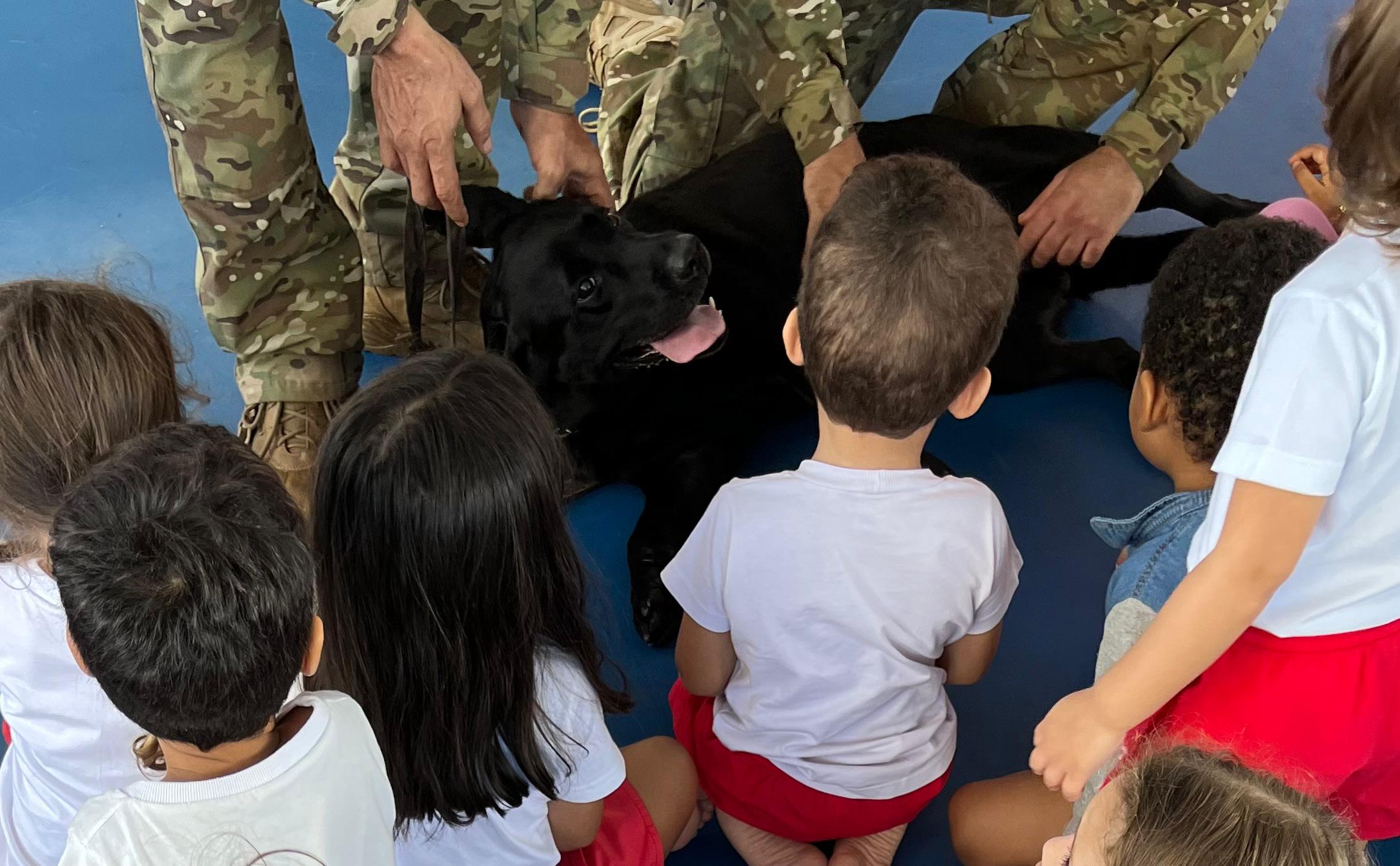 Com demonstrações operacionais e a presença dos cães Laica e Sonic, alunos do Grupo 03 vivenciaram uma experiência educativa