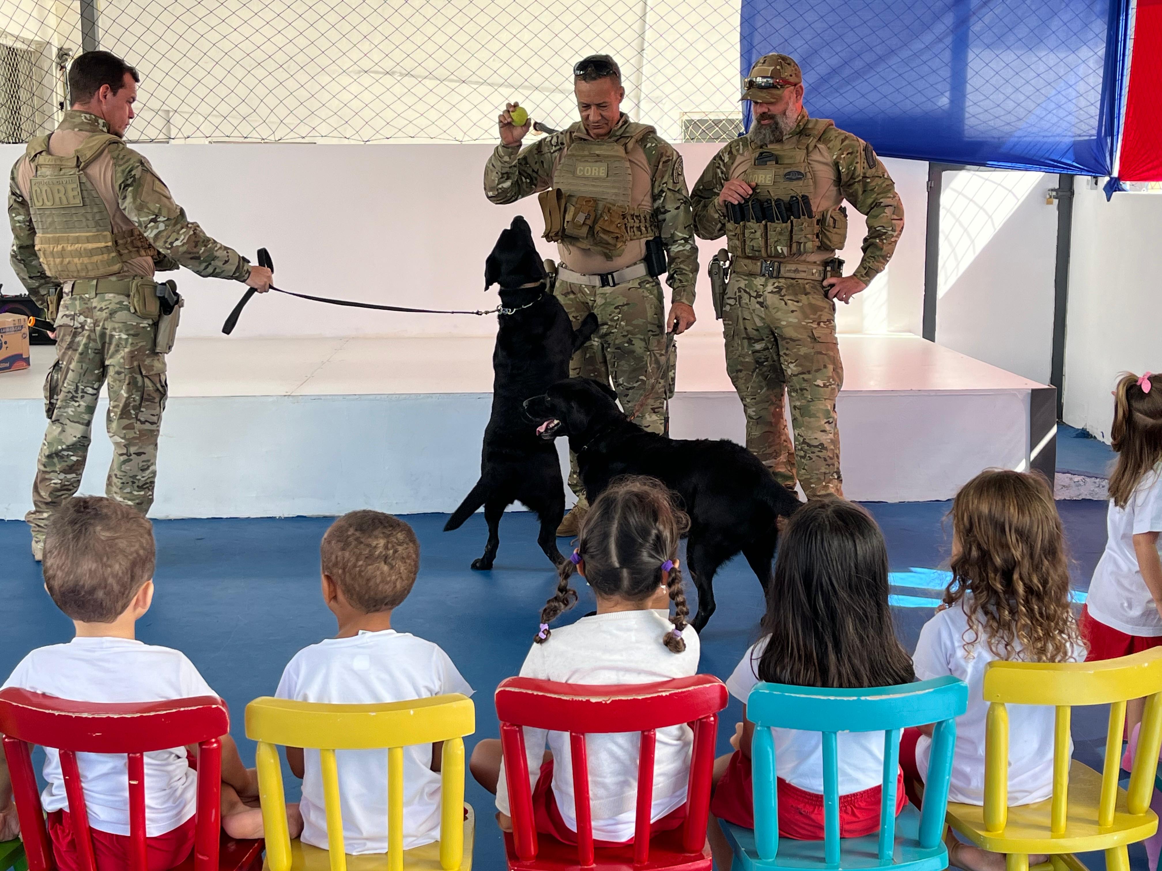 Na manhã desta terça-feira (13), uma creche localizada no bairro Acupe de Brotas recebeu a visita de integrantes da Coordenação de Operações e Recursos Especiais (Core) da Polícia Civil, como parte de uma ação pedagógica voltada ao projeto sobre profissões, desenvolvido pelo Grupo 03 da unidade.