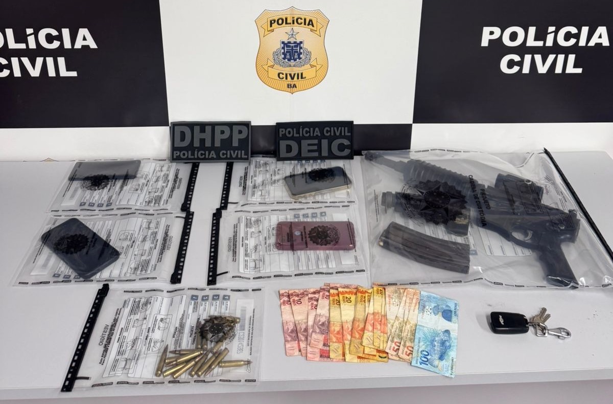 Um fuzil calibre 556 foi apreendido e dois homens foram presos em flagrante, nesta quinta-feira (15), durante uma ação da Polícia Civil da Bahia, em Salvador. A arma, oriunda do município de Simões Filho, seria entregue no bairro de Macaúbas, na capital.