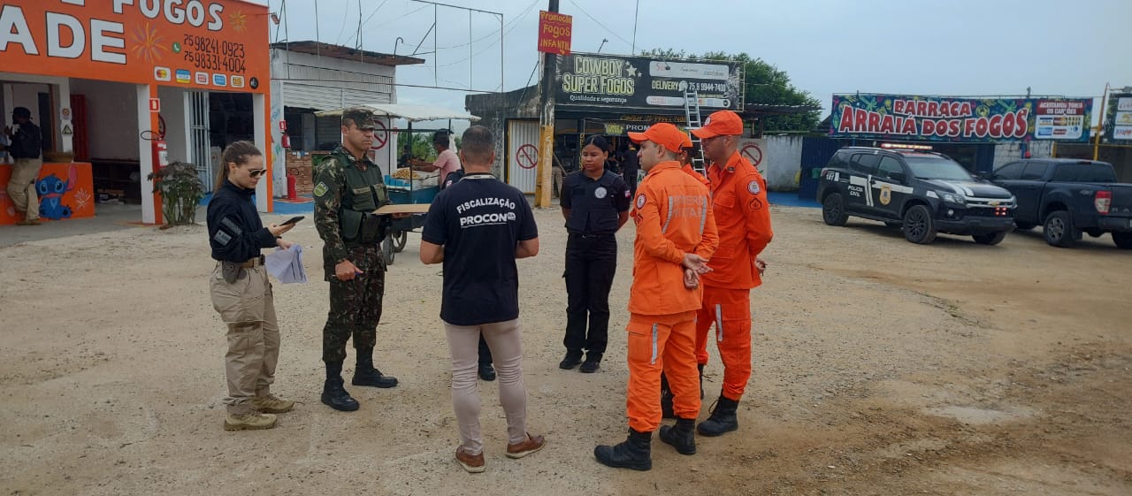 Durante as diligências, os fiscais também constataram que uma das barracas interditadas operava em descumprimento a uma decisão judicial que proíbe a comercialização de explosivos sem as devidas autorizações legais. O caso será formalmente comunicado ao Ministério Público do Trabalho e à Justiça do Trabalho.